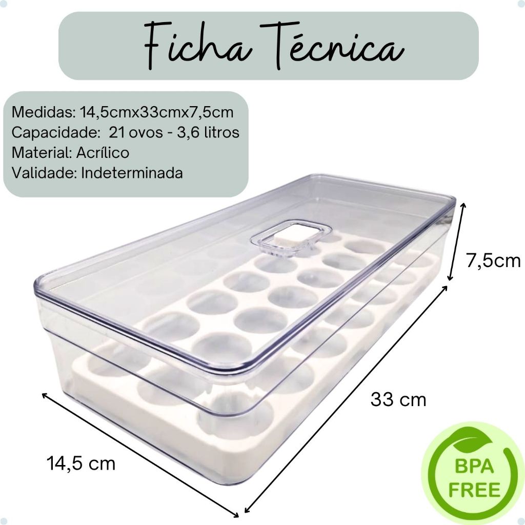Organizador de Geladeira Quadrado 3,6 Litros C/ Tela de Ovo-Plastutti
