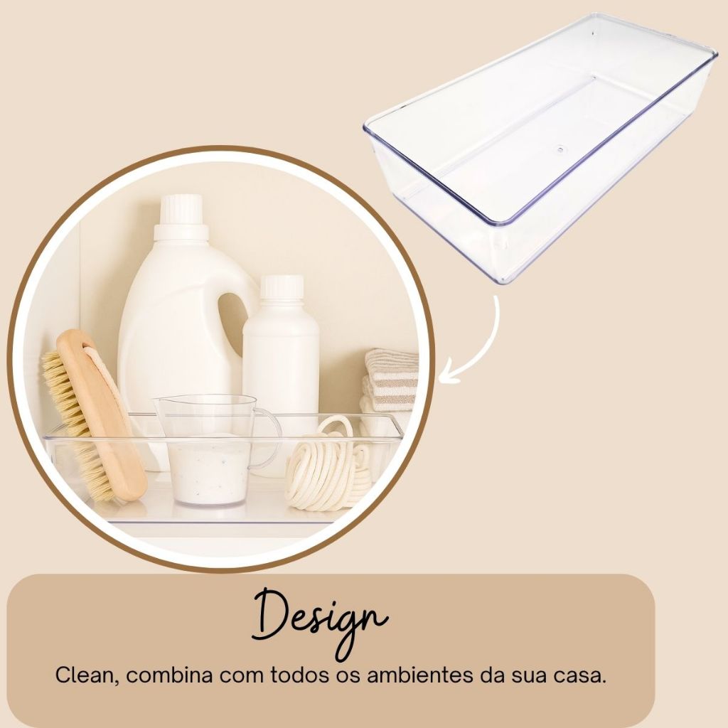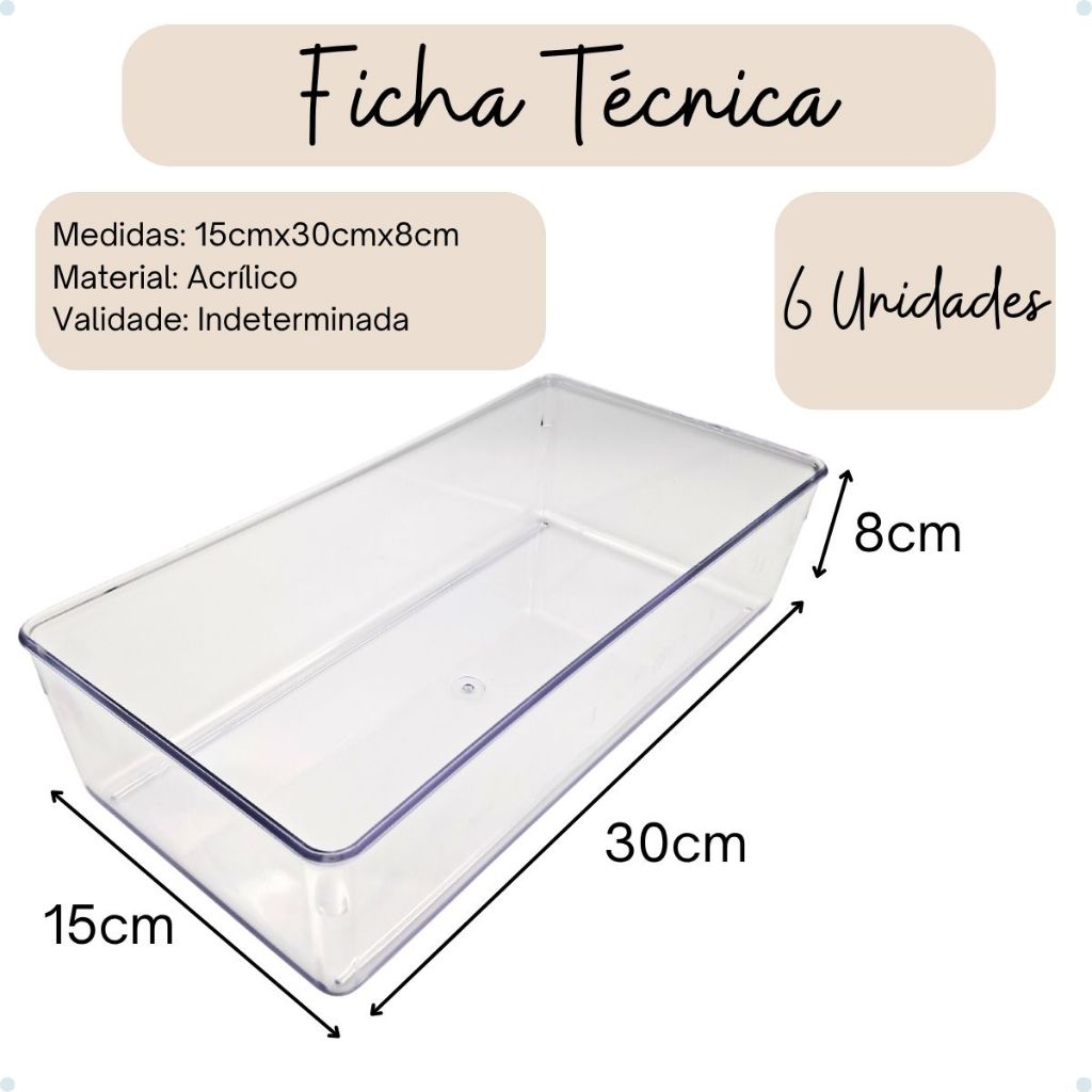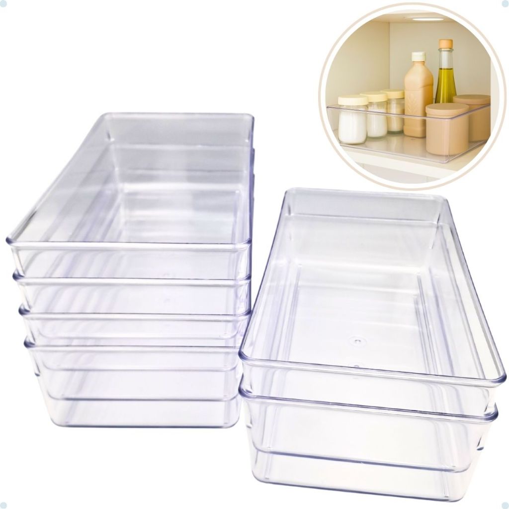 Kit com 6 - Organizador de Geladeira e Armário Retangular em Acrílico - Multiuso Transparente.