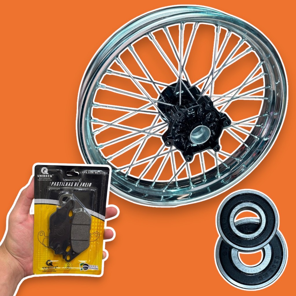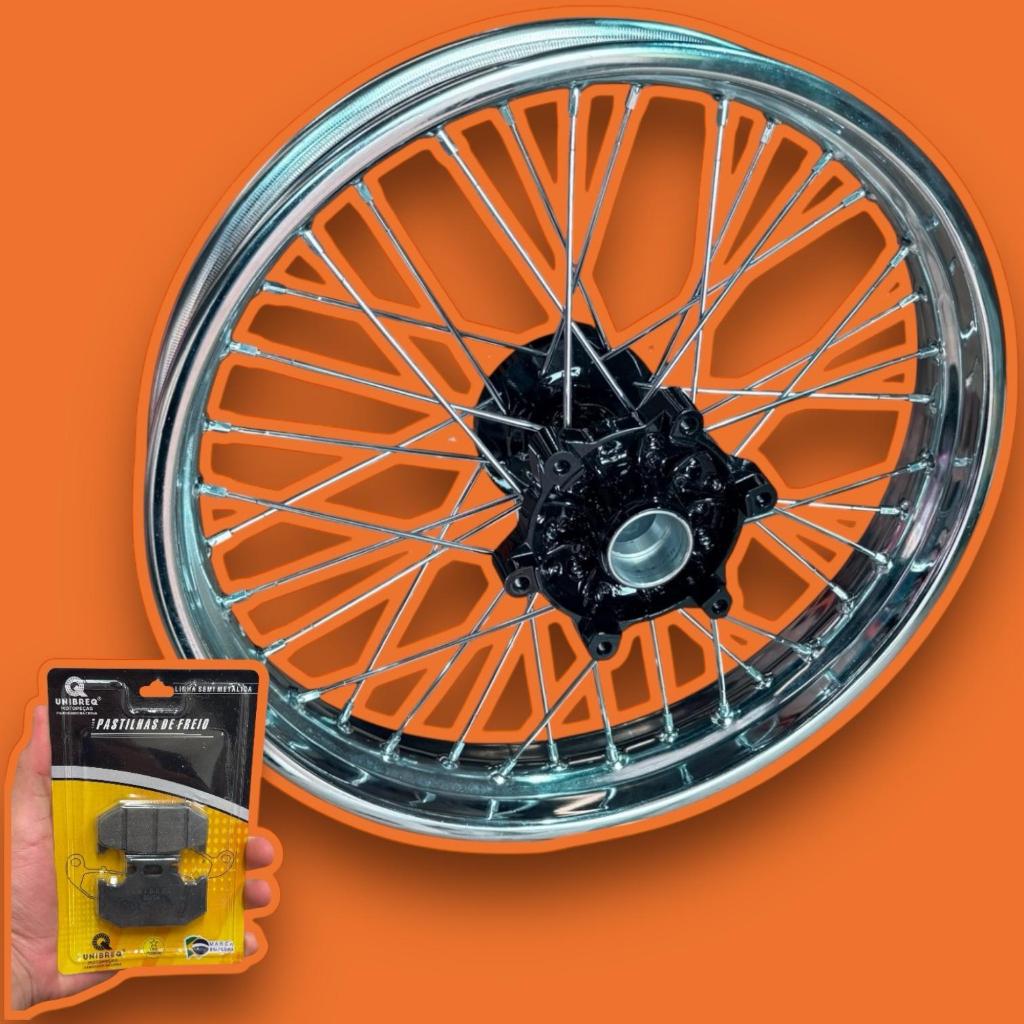 Roda Traseira Lander e Tenere Alinhada Reforçada Raios 4mm Cromados