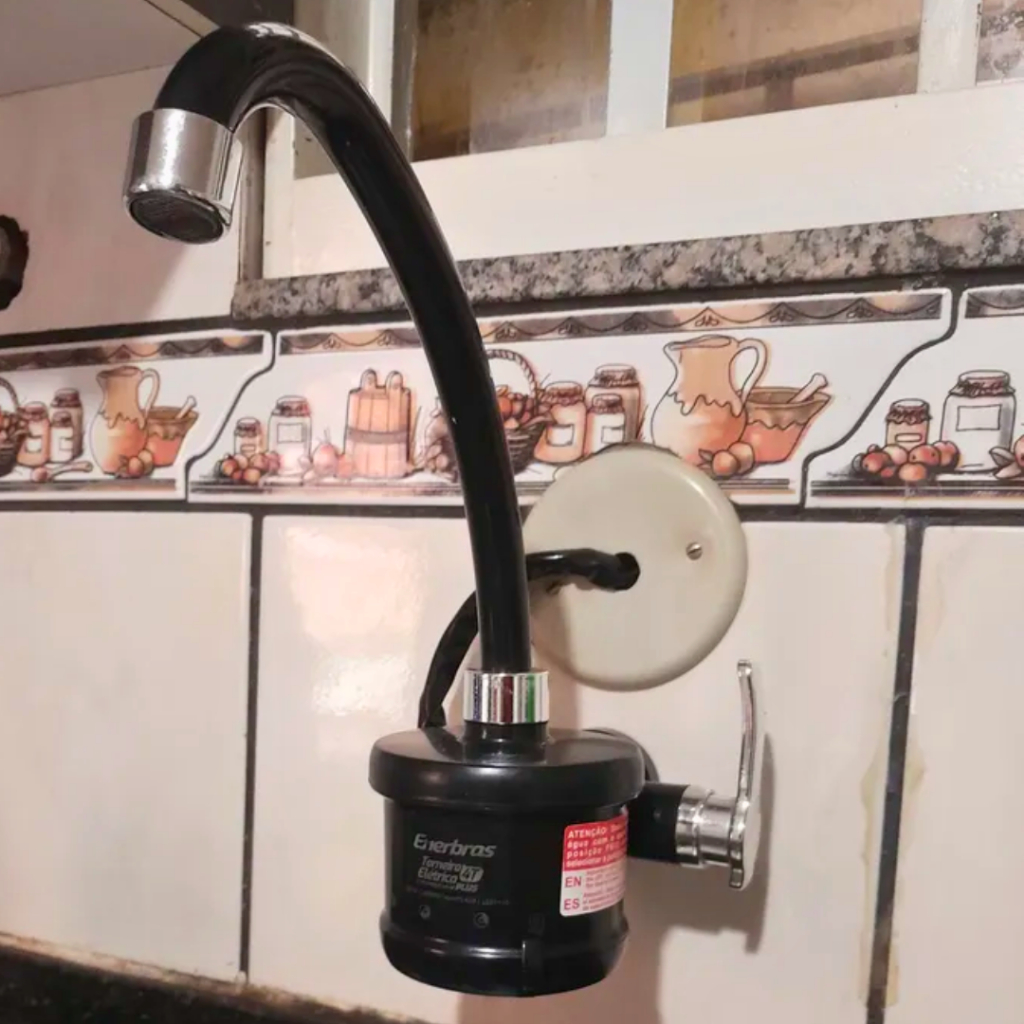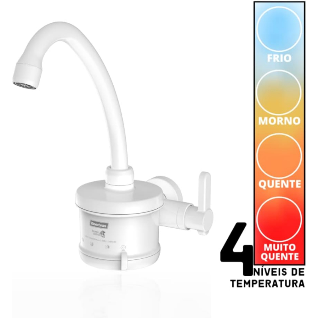 Torneira Elétrica Parede Cozinha 4 Temperaturas 127V 4800w ou 220V 5500W Água Quente Branco Preto