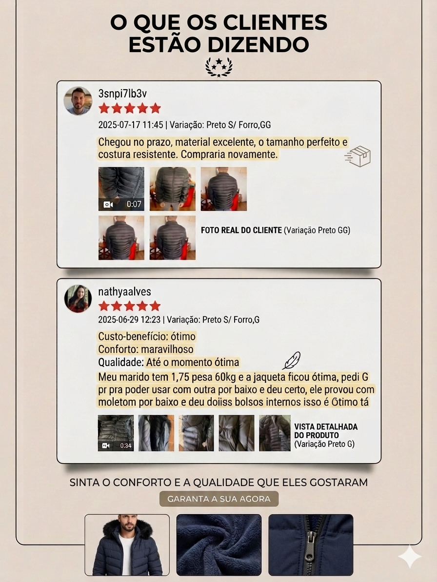 Jaqueta Puffer Masculina Matelasse Inverno Quente Peluciada e Sem Forro