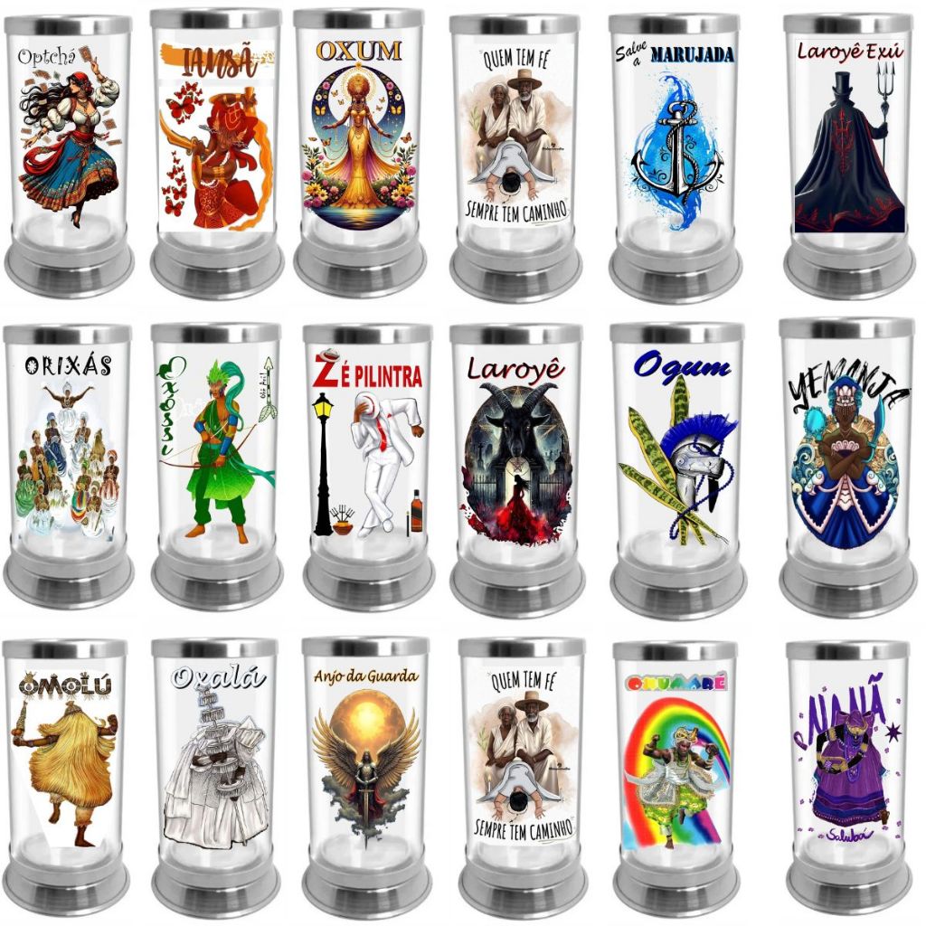 Protetor Suporte Vela 7 Dias Orixás Copo de Vidro Alumínio - Escolha o modelo