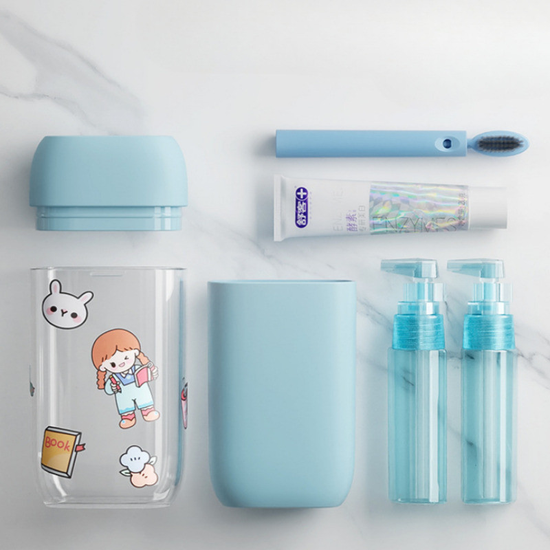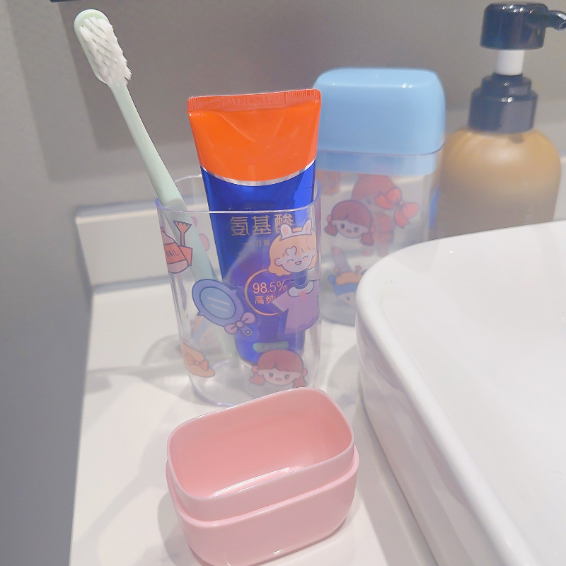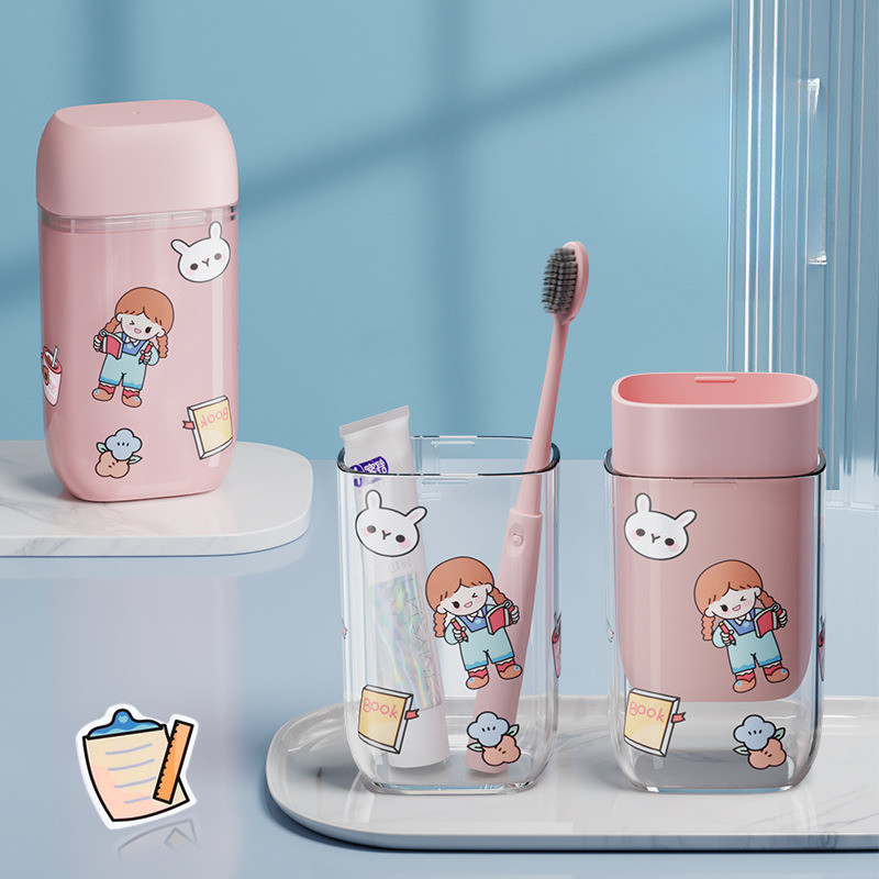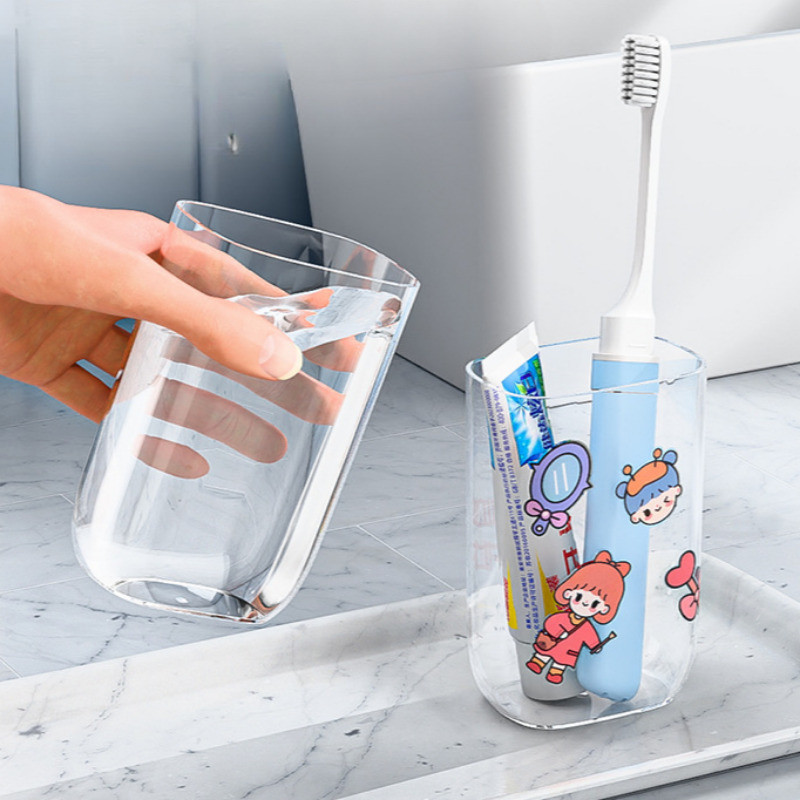 [GuuDuu] Copo Transparente Para Enxaguatório Bucal Com Adesivo-Caixa De Armazenamento De Pasta De Dente Escova De Dentes