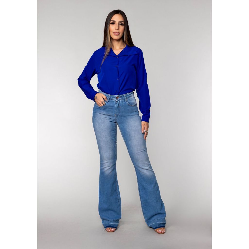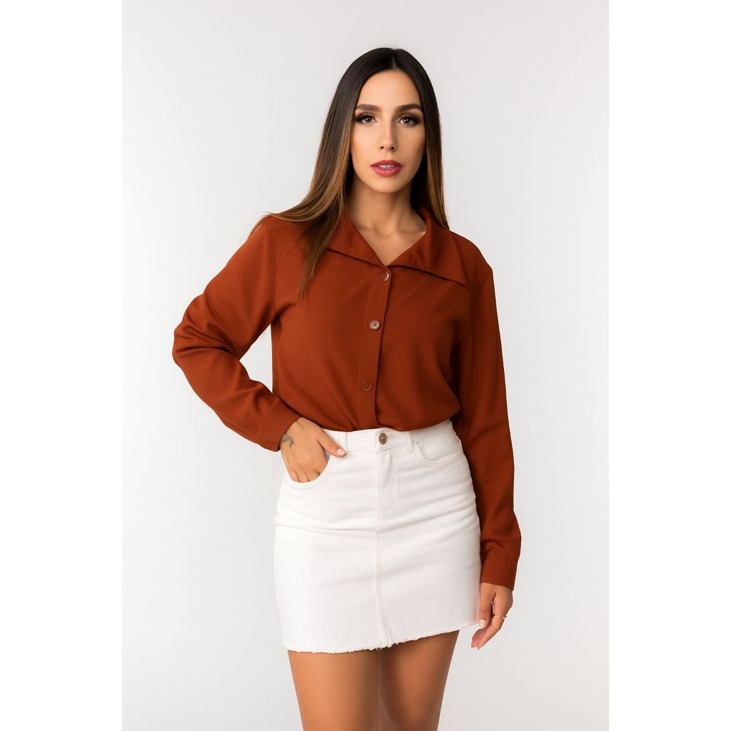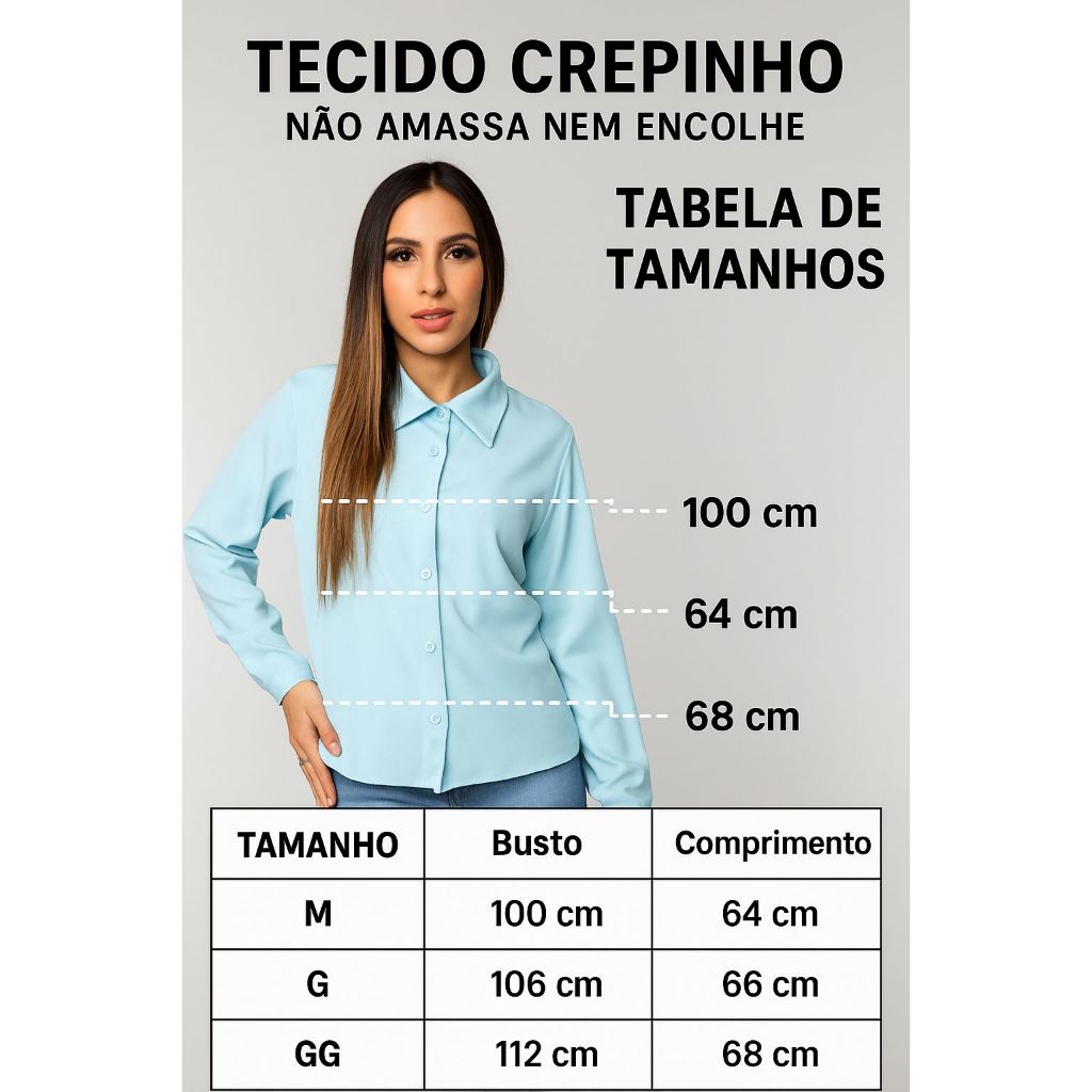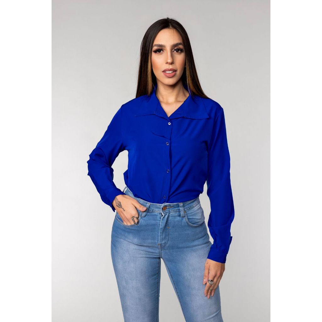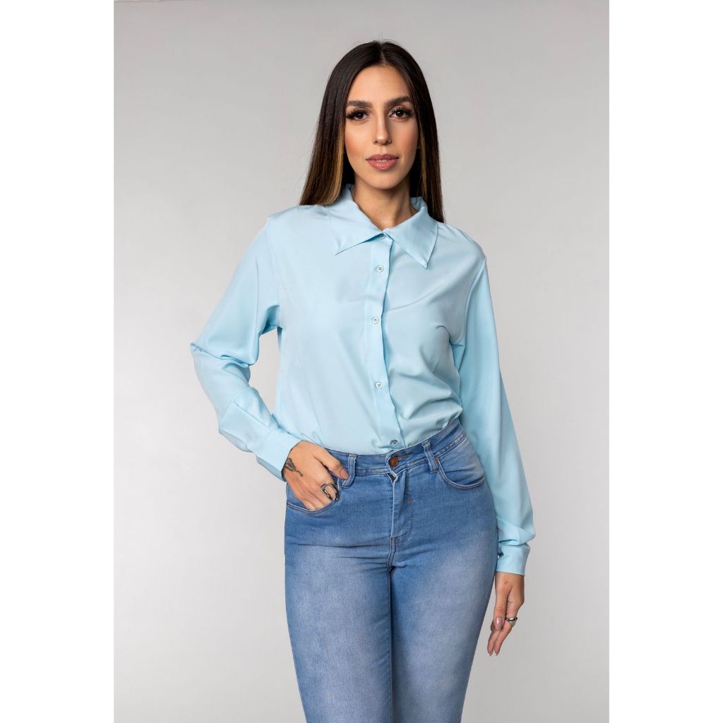 Camisa Social Manga Longa Liso Com BotoesConfortavel Versatil Envio Imediato