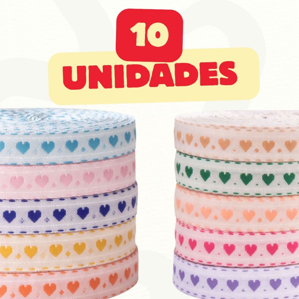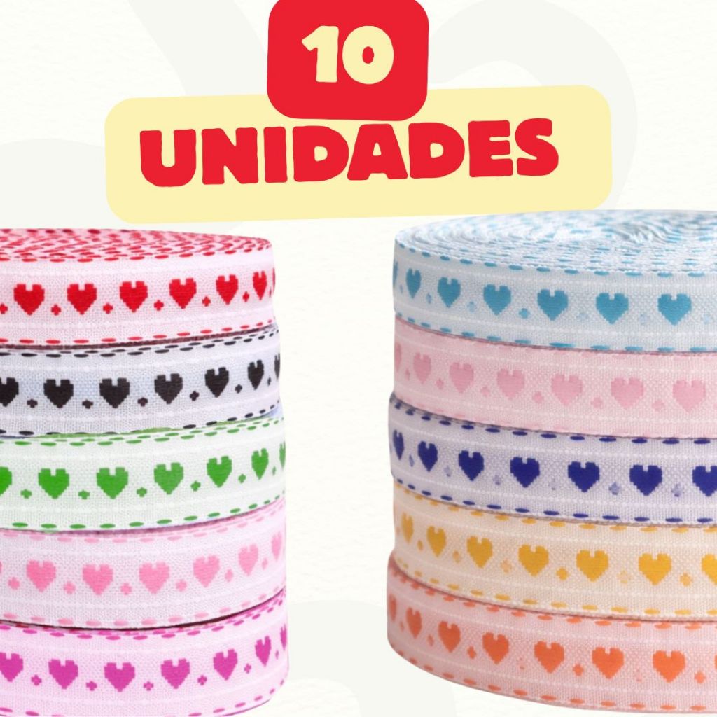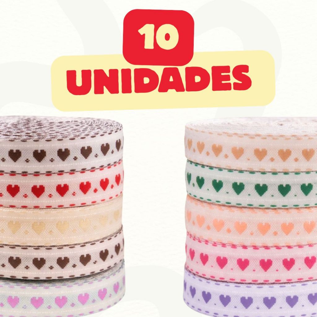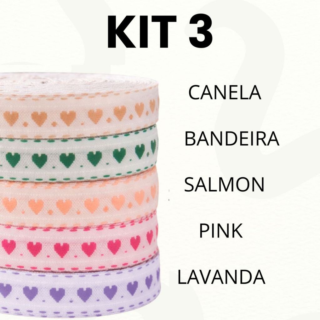 Kit Passa Fita Falso Coração Rolo 10m Cada Diversas Cores