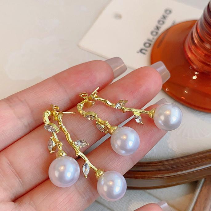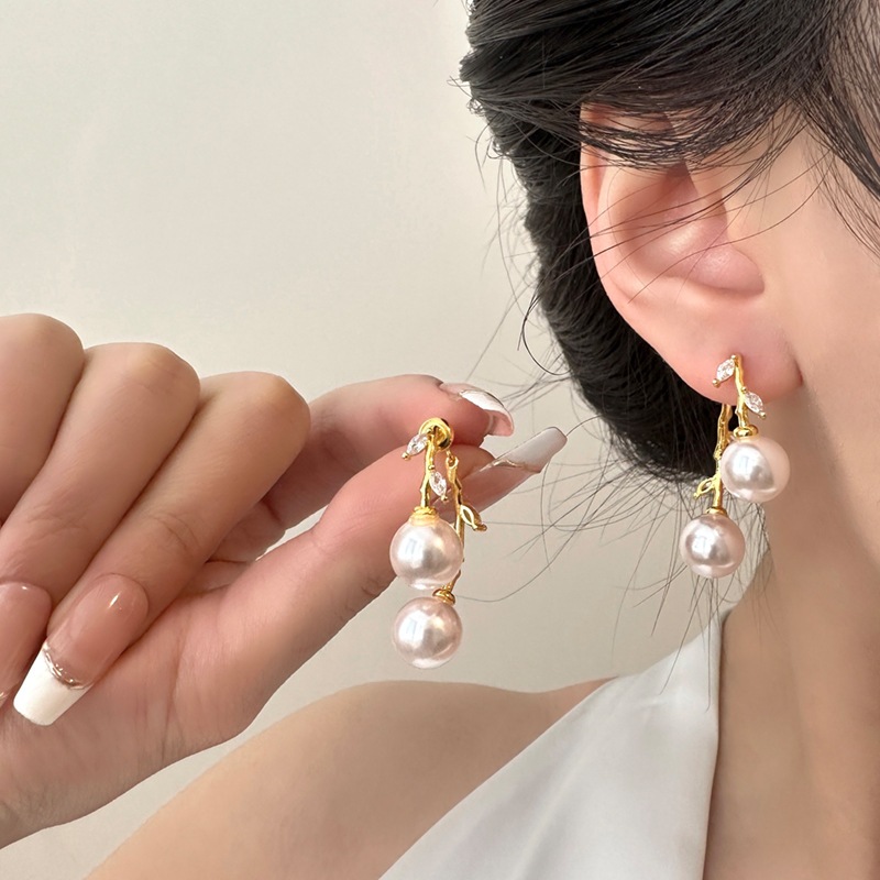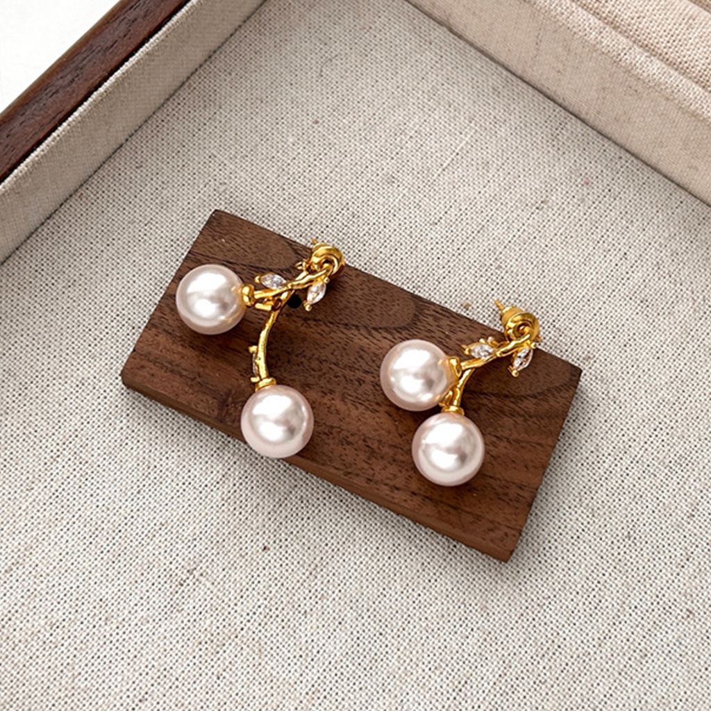 Brincos Versáteis pérola Cereja Enfeitado com ramos e folhas de zircônia Simples Para Mulheres