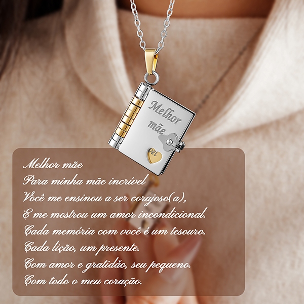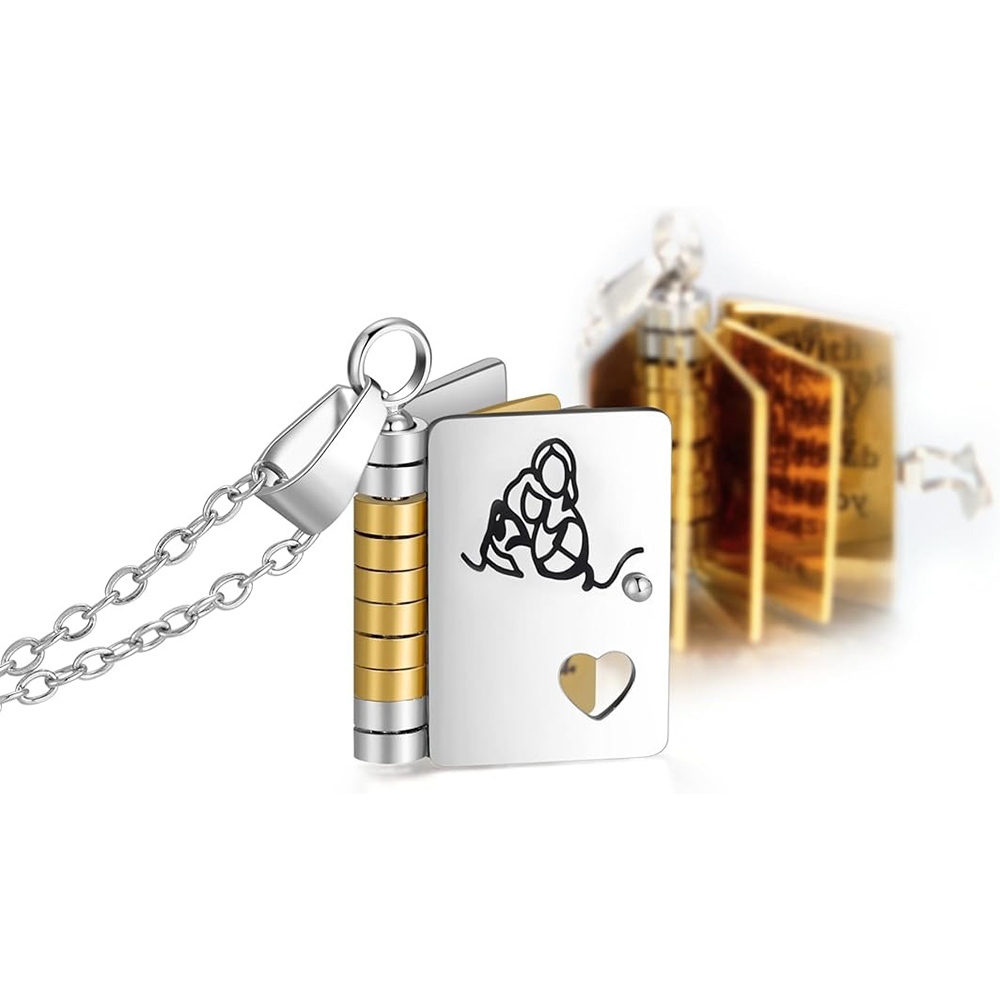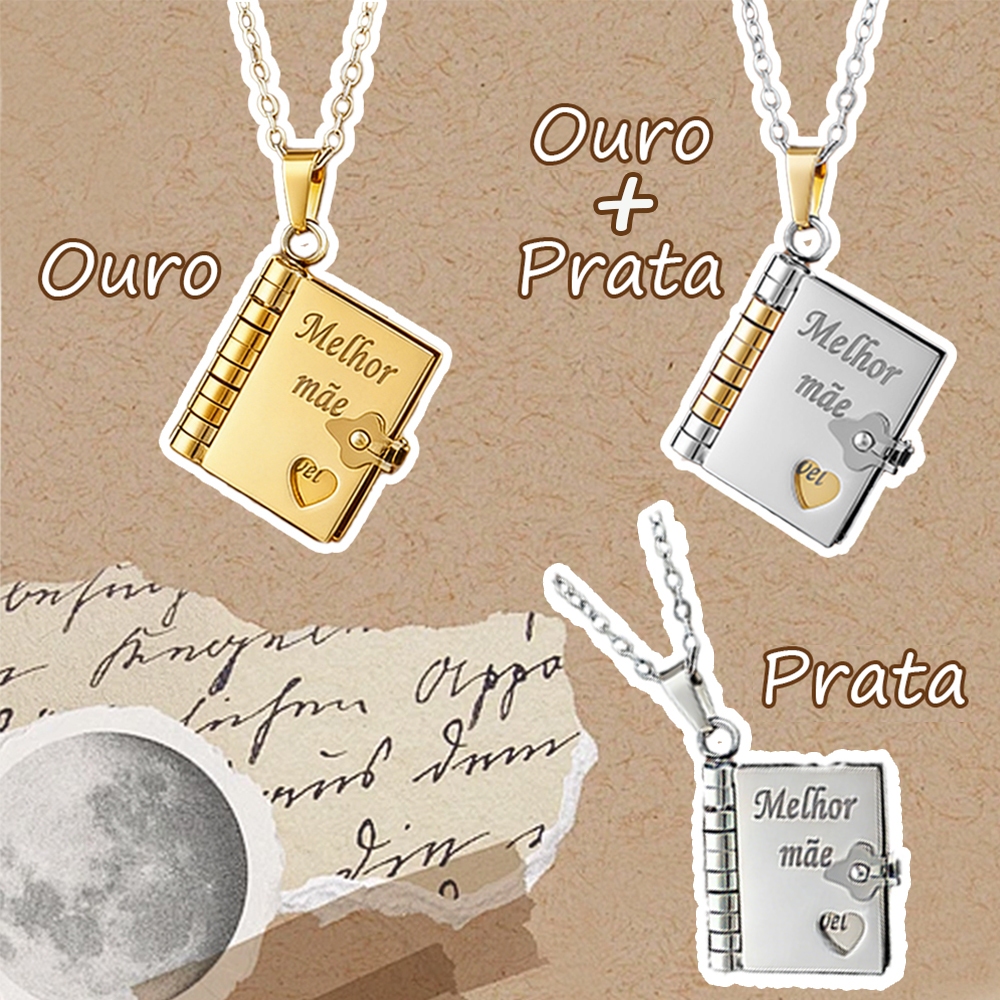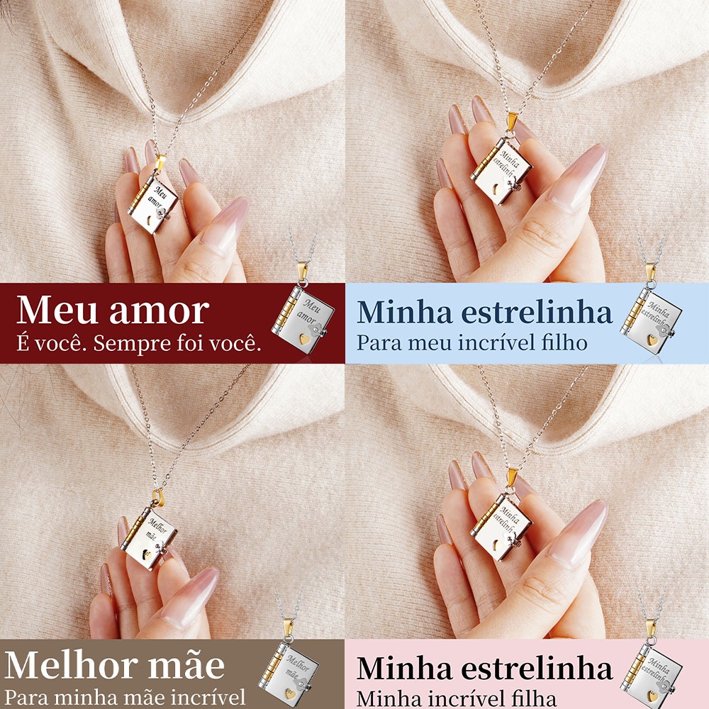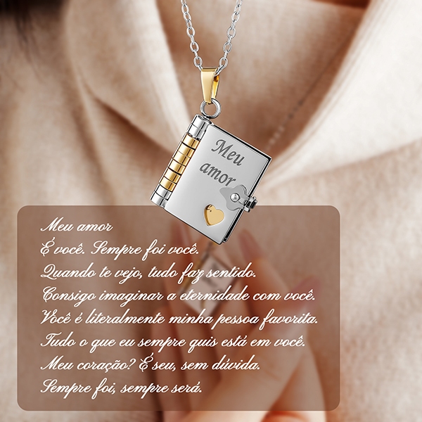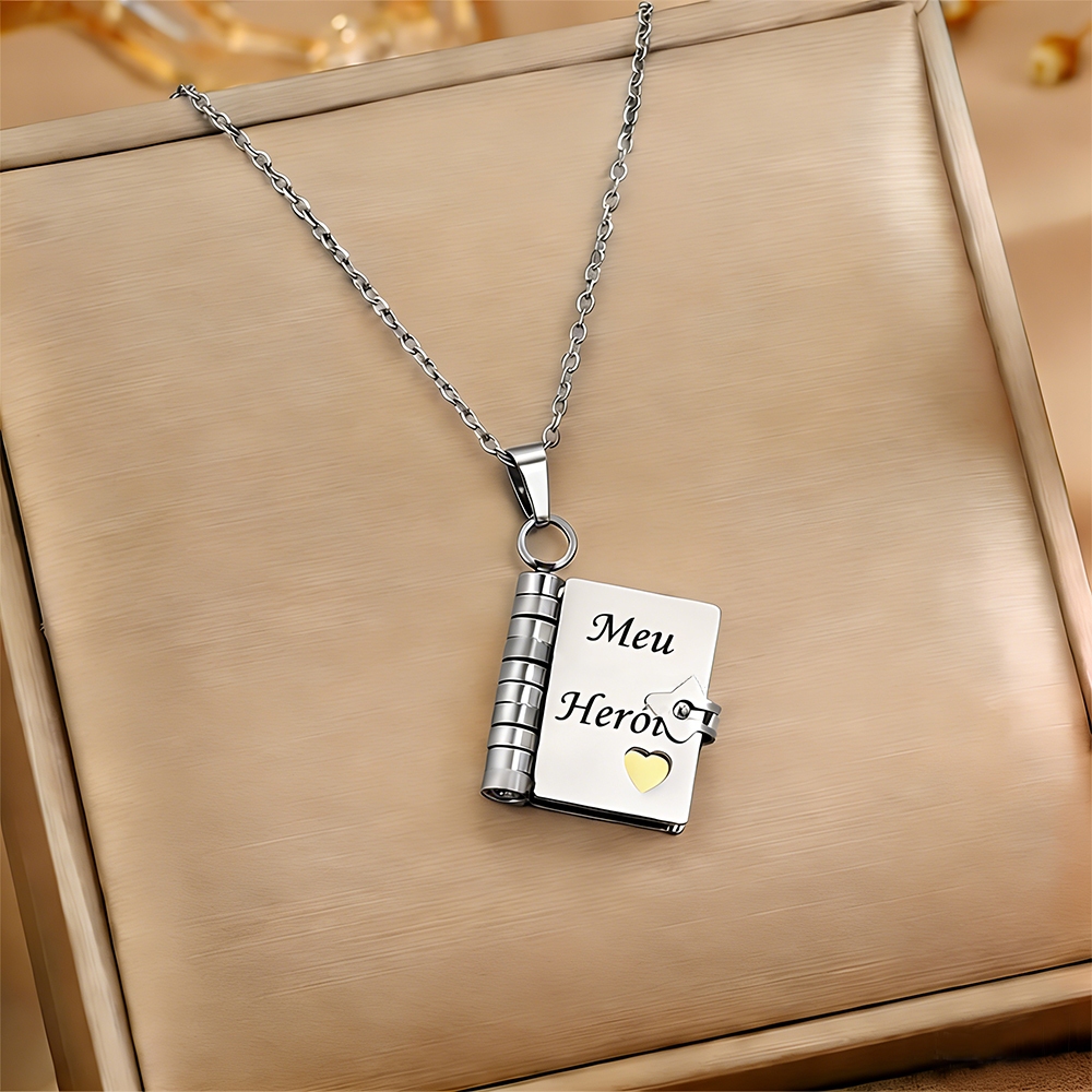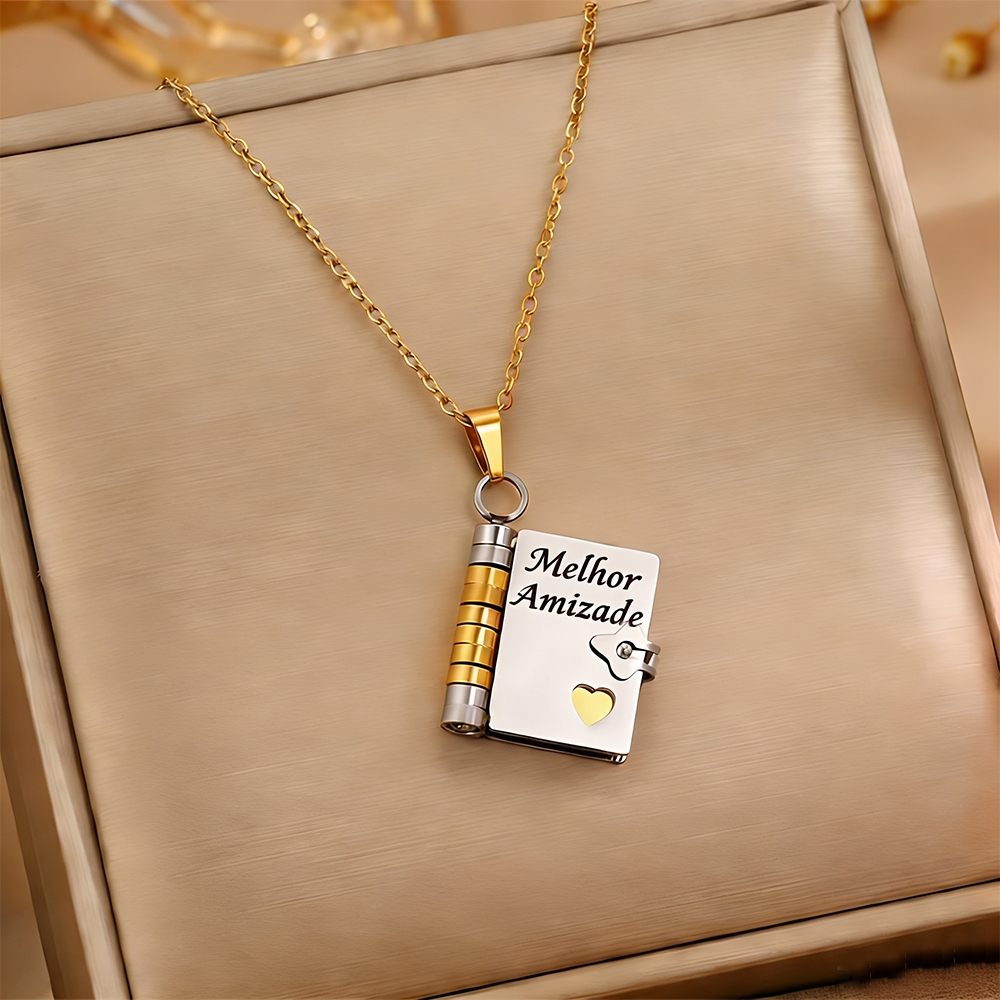 Colar de livro com letras,Língua brasileira,Envelope de carta de amor, Colar Gravado Pingente de Livro em Aç