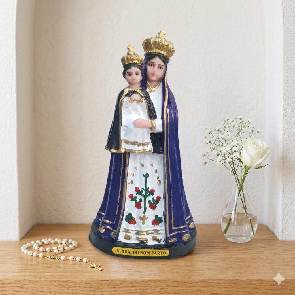 Imagem Nossa Senhora do Bom Parto Resina 15cm Pintada à Mão Decoração Religiosa Presente Católico