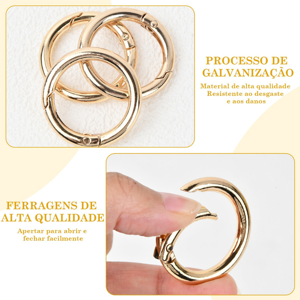 10 Argolas Premium Articulada Mosquetão 18/25/30/35mm Banho Zamac Dourado/Prata Bolsas Chaveiros