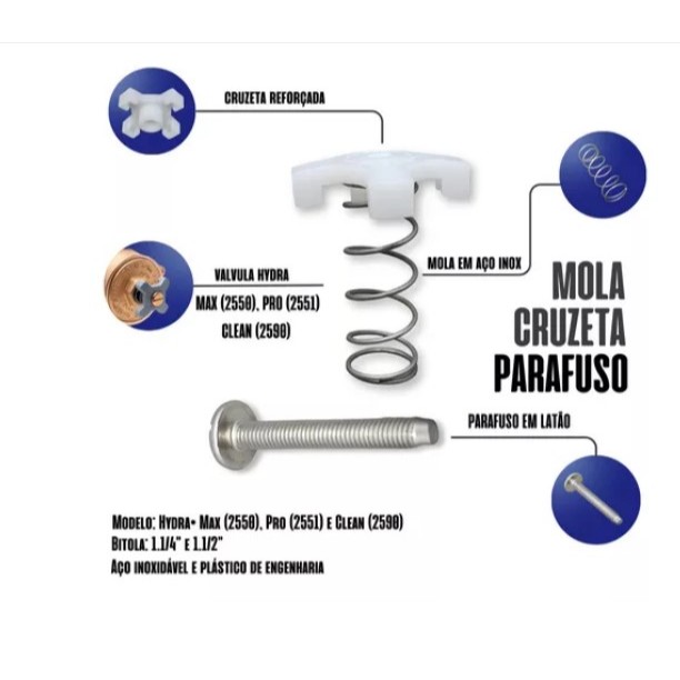 Kit Cruzeta, Mola E Parafuso Para Válvula Hydra Max 2550