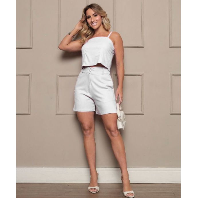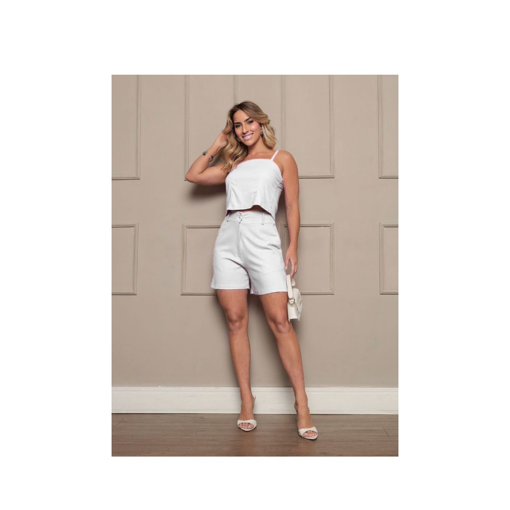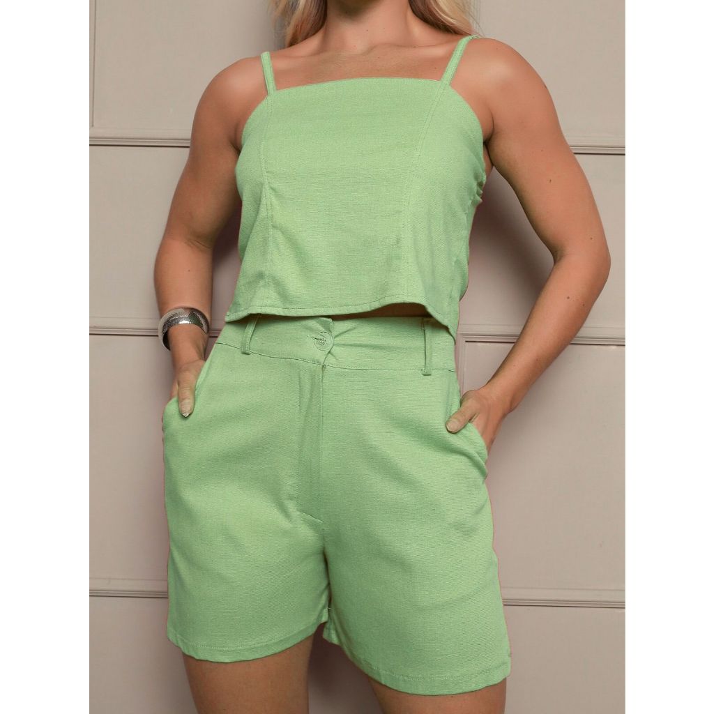 Conjunto Feminino Linho Short E Cropped regata Moda Blogueira
