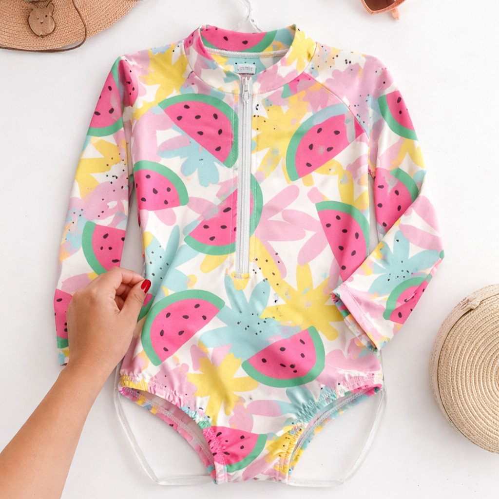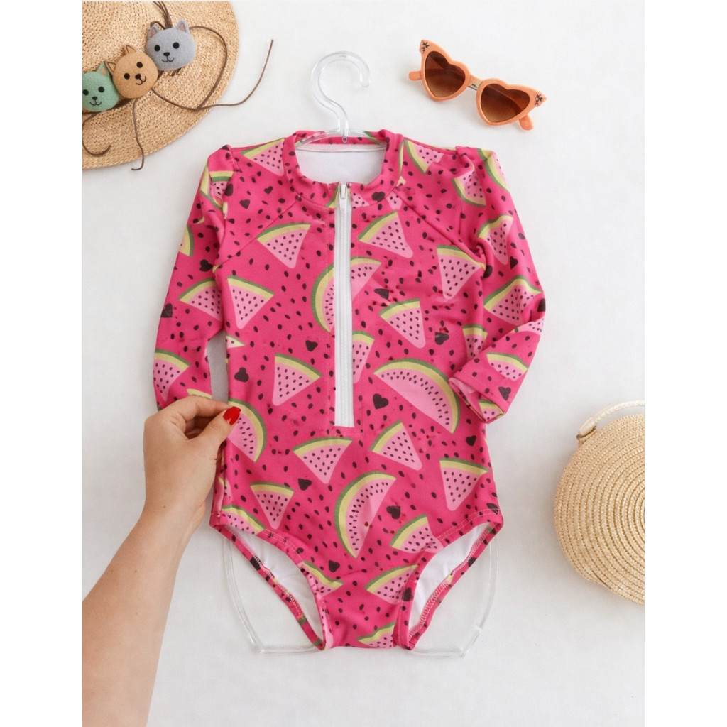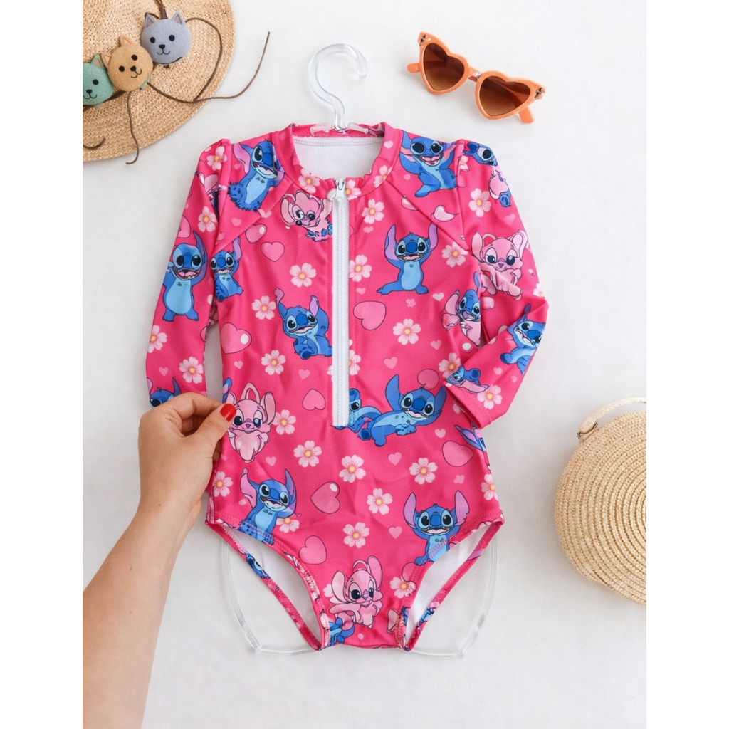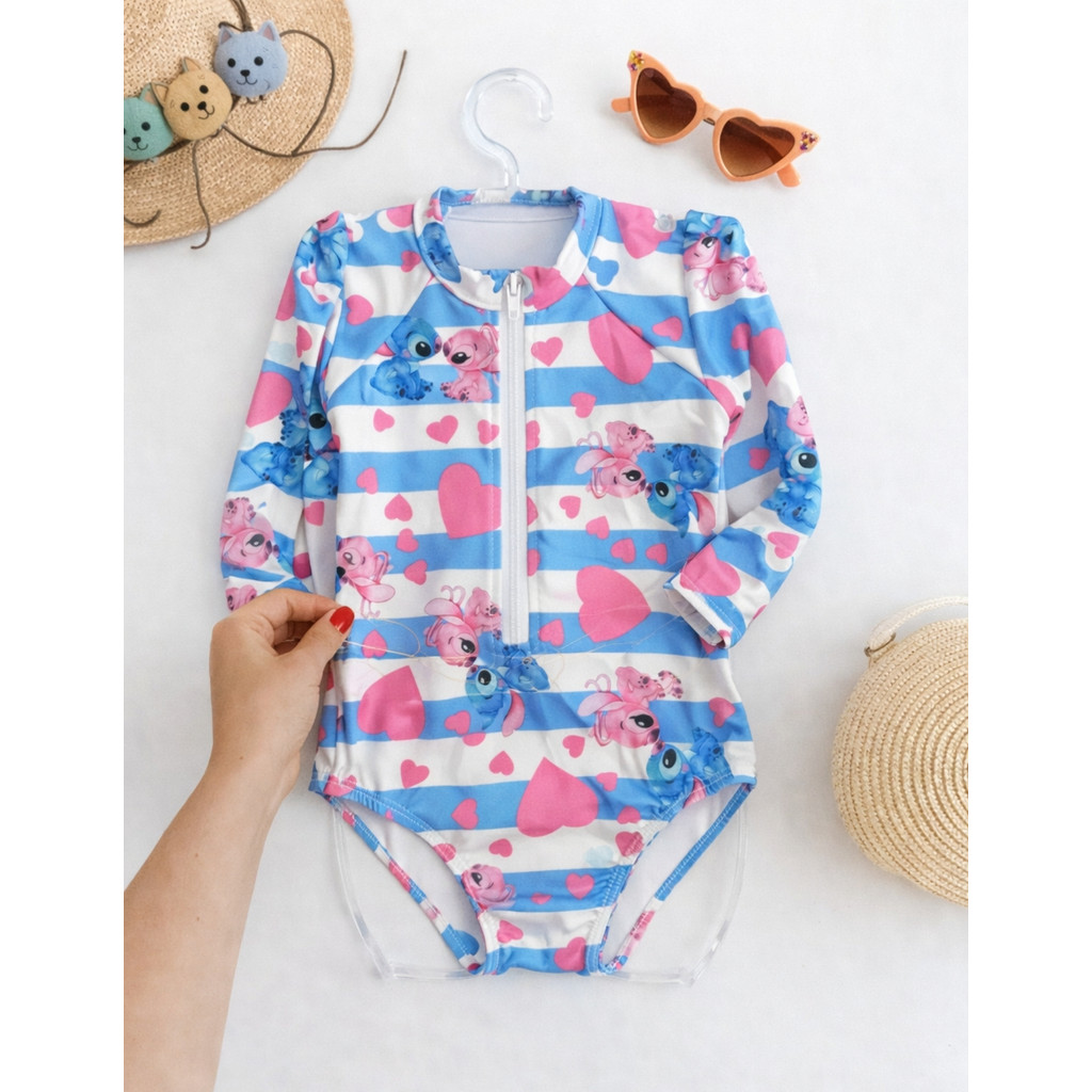 Maiô Infantil Com Ziper Personagens Hello Kitty Para Meninas Com Proteção UV Moda Verão Praia Carnaval