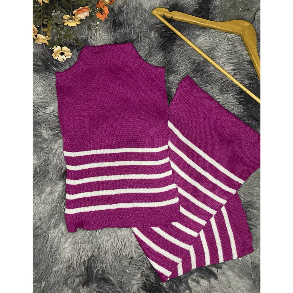 Conjunto Blusinha e Saia Midi Canelada Tricot Poliester Casual Versátil Moda Feminina Tendência