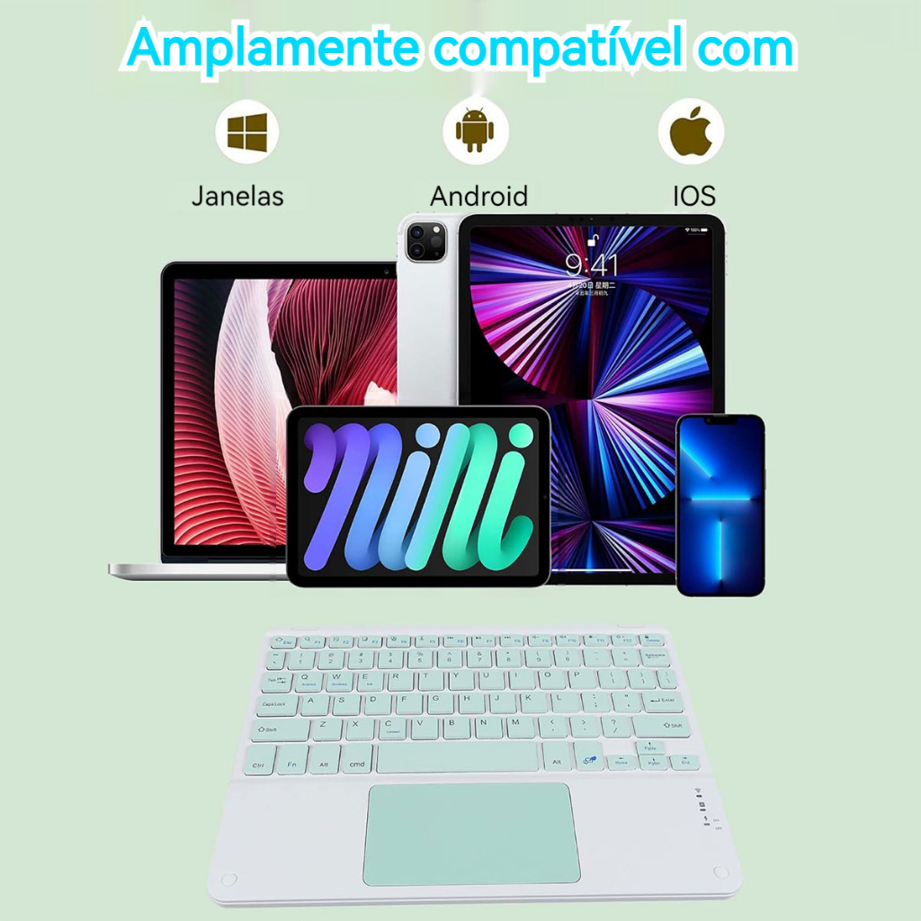 Teclado Bluetooth Magnético ABNT2 com tecla “Ç” para iPad 11ª Geração / Samsung S6 Lite / A9 Plus / Redmi Pad SE 11