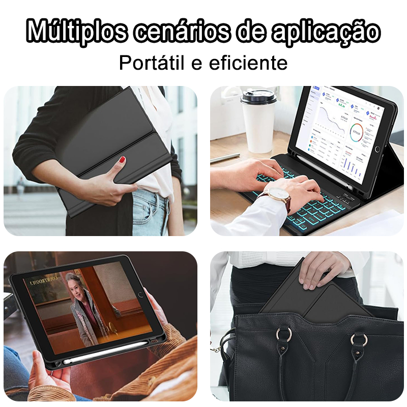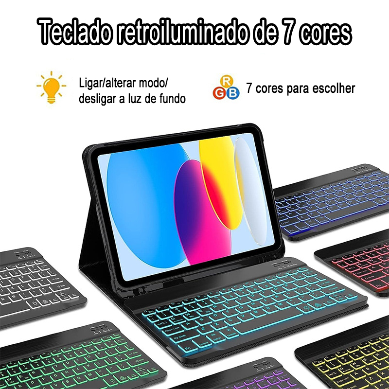 Capa para Samsung S7/S8/S9/S9FE com teclado magnético ABNT Bluetooth luminoso, mouse, S7+/S7FE/S8+/S9+/S9FE+/12,4in