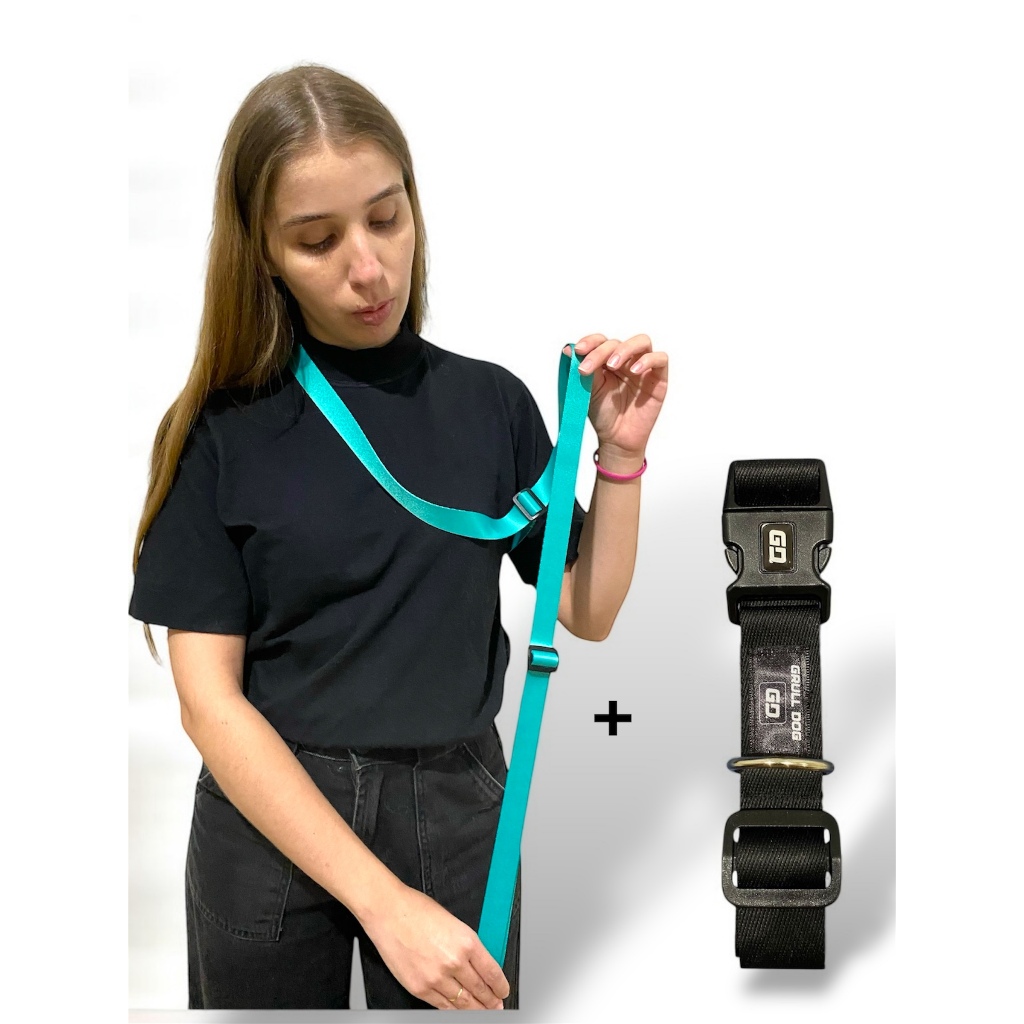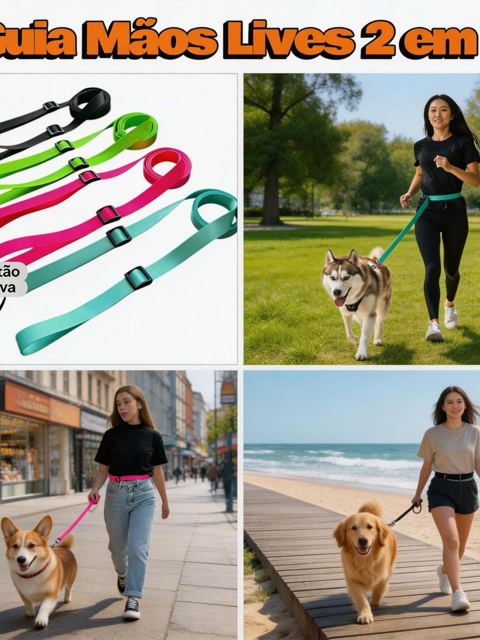 kit coleira regulável + guia para passeio mãos livres para cachorro resistente reforçada