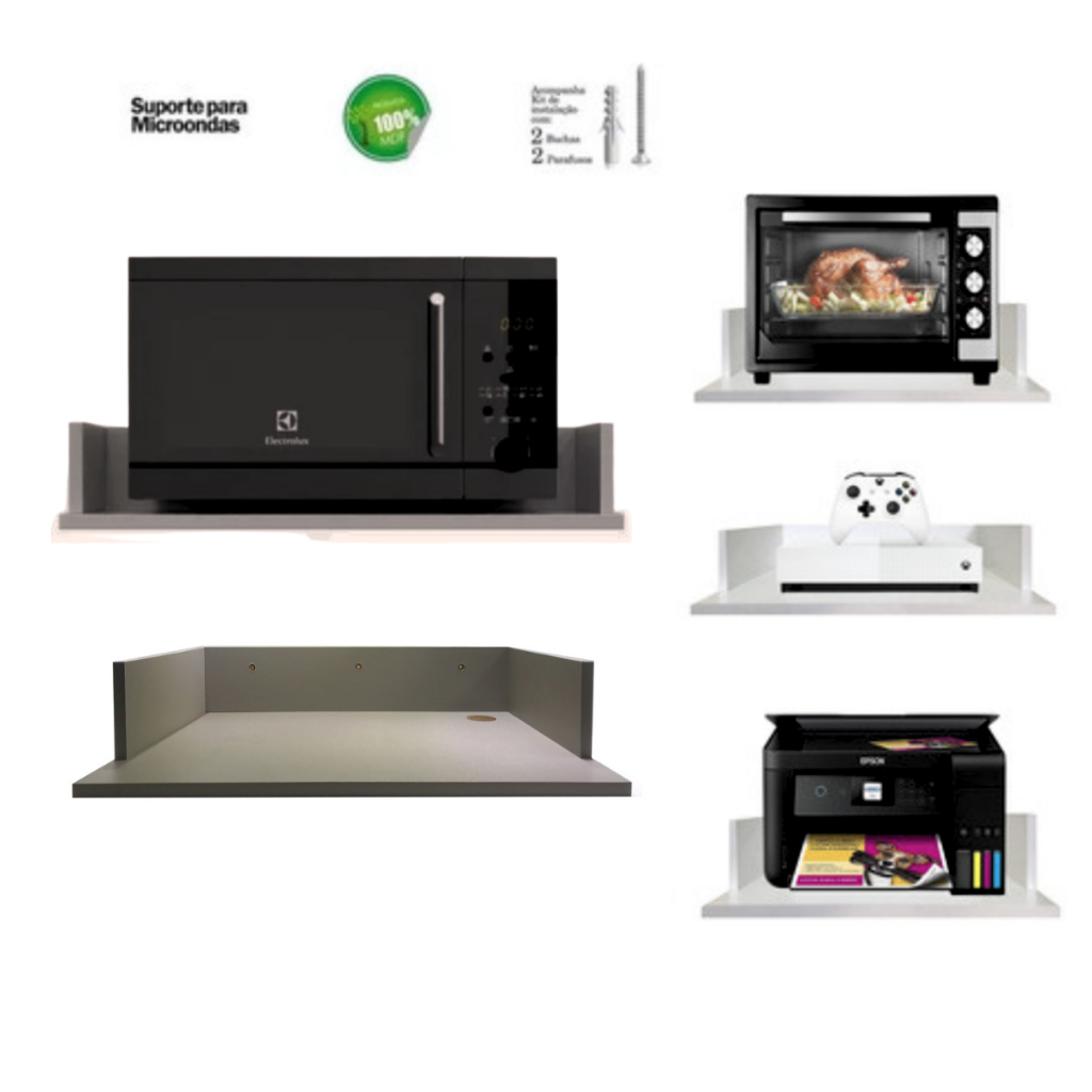 Prateleira Suporte Para Microondas Cinza para Forno Airfryer Impressora Nicho MDF Apoio