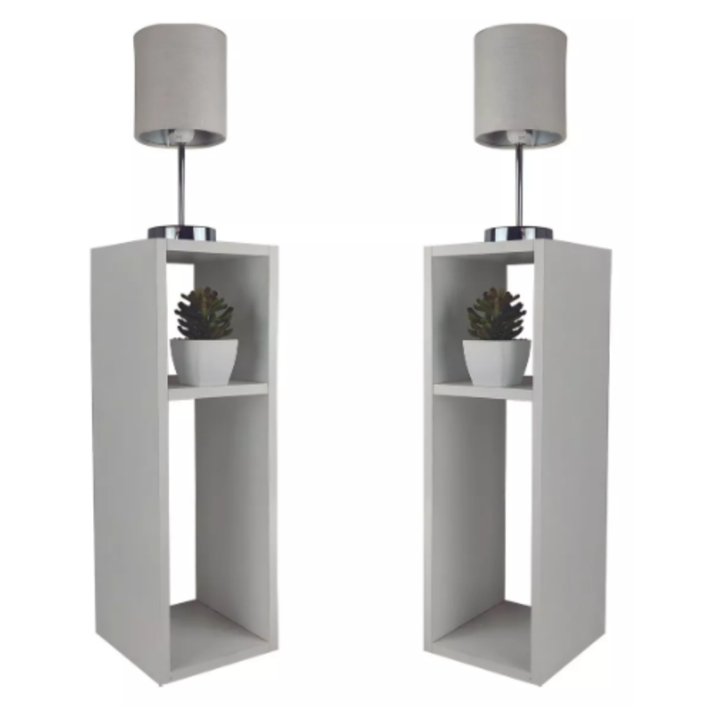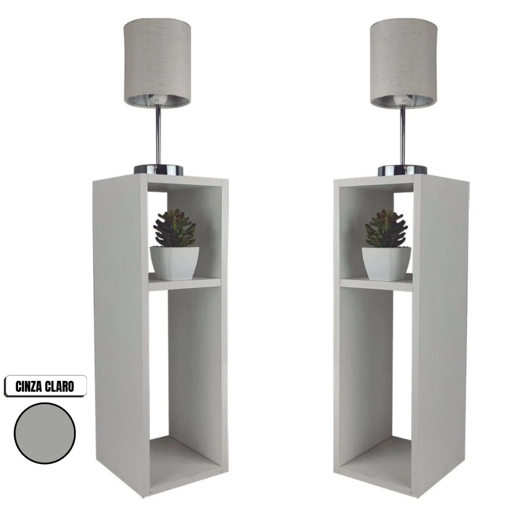 Kit até 2 Unidades Mesa Cabeceira Pequena Cinza 20x20x60cm para Quarto Escritório Sala