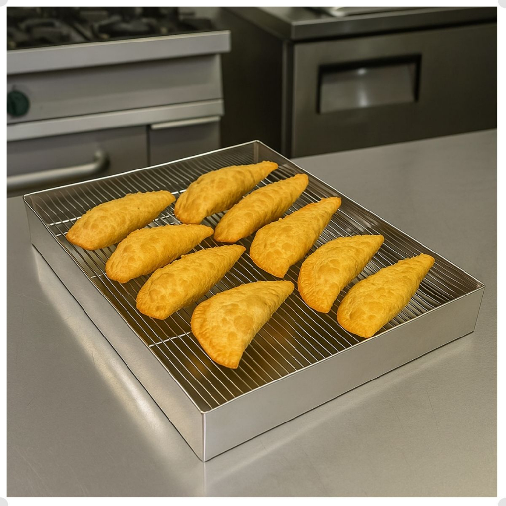 Escorredor De Fritura Inox Pastel Salgados Bandeja 25x35x6cm