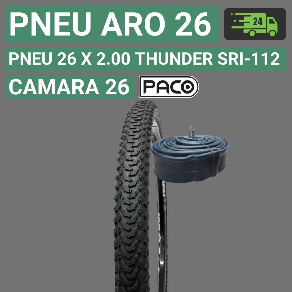 Pneu Aro 26 Thunder Pneu Aro 26 Bicicleta Preto c/ Cravo Pneu aro 26 X 2.00 SRI-112 PSI máx 65 Paco