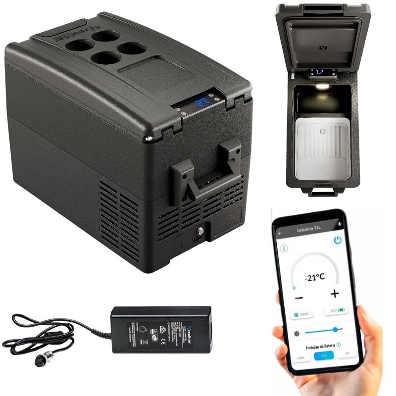Geladeira Portátil Quadrivolt Digital Resfriar 31 Litros Bluetooth Caminhão Ônibus Van Trailer