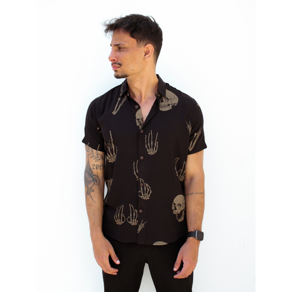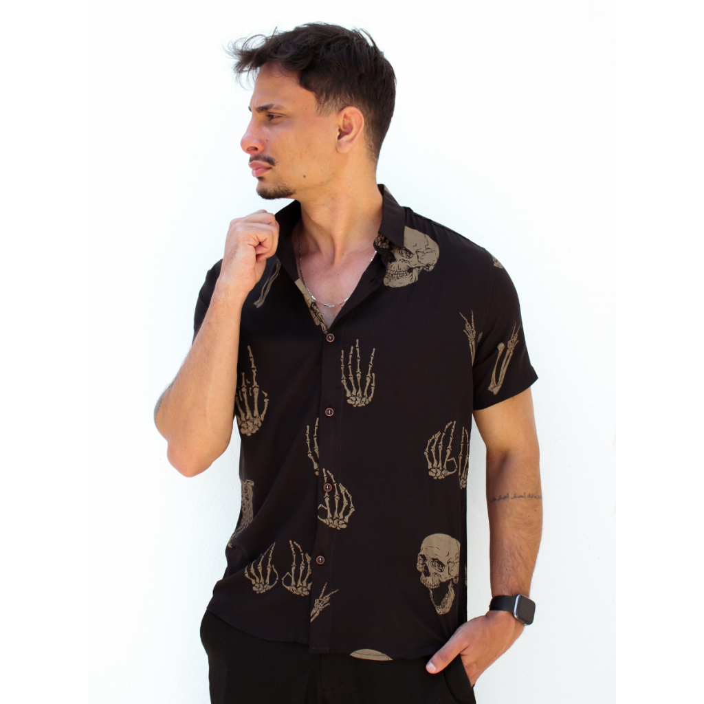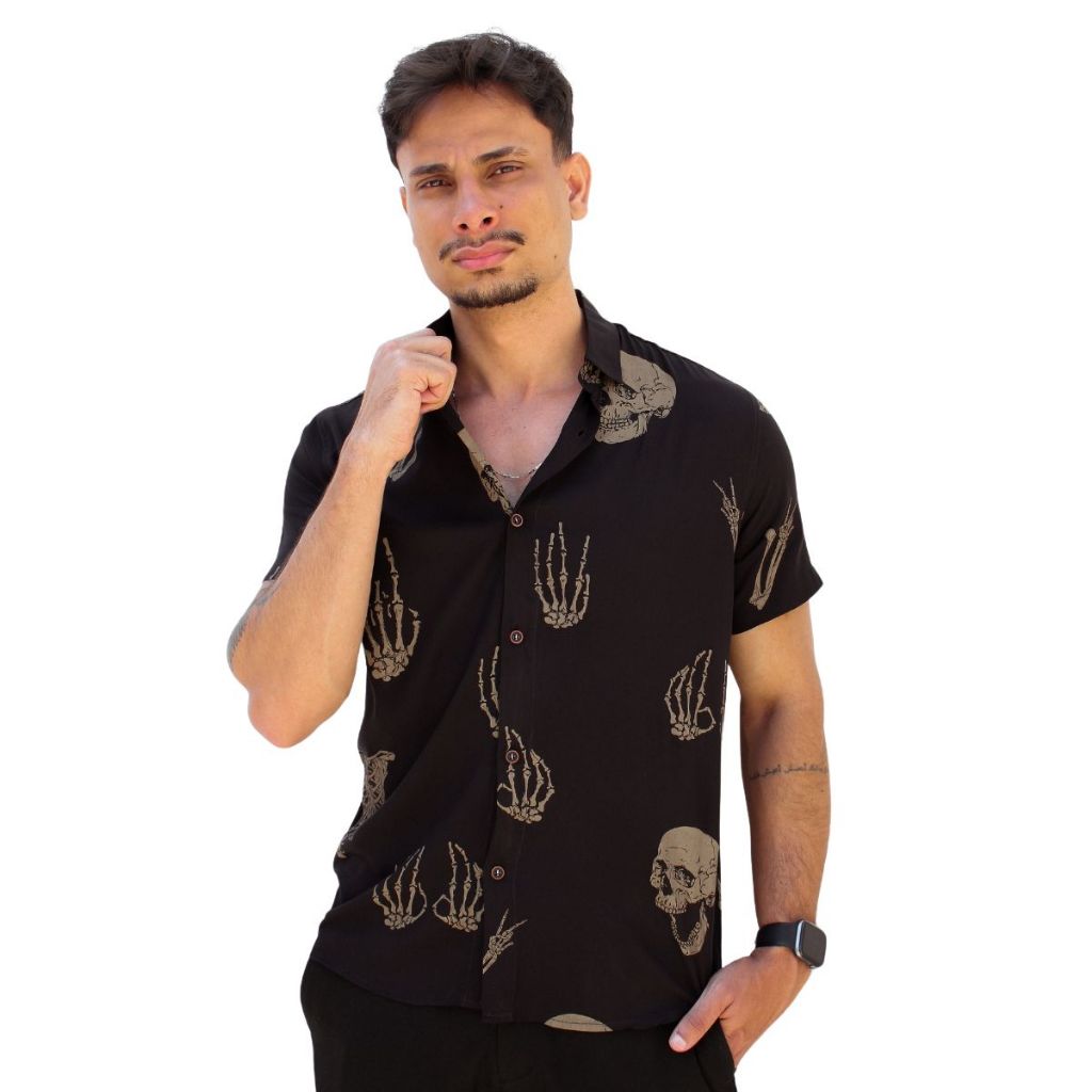 Camisa Social Masculina Slim Viscose Caveira Pronta Entrega
