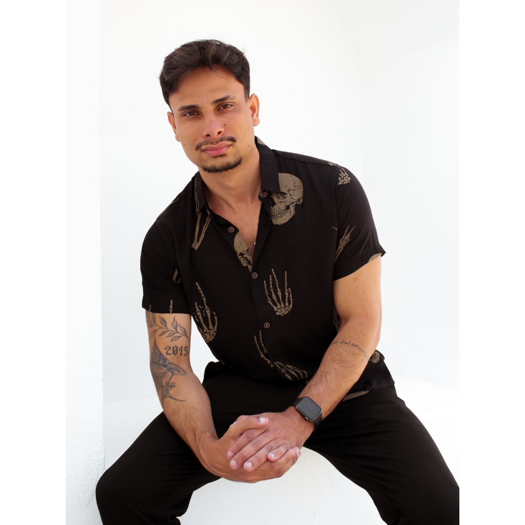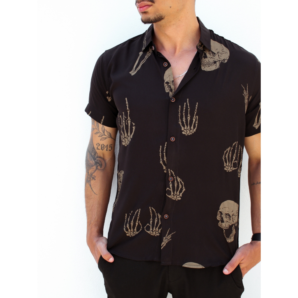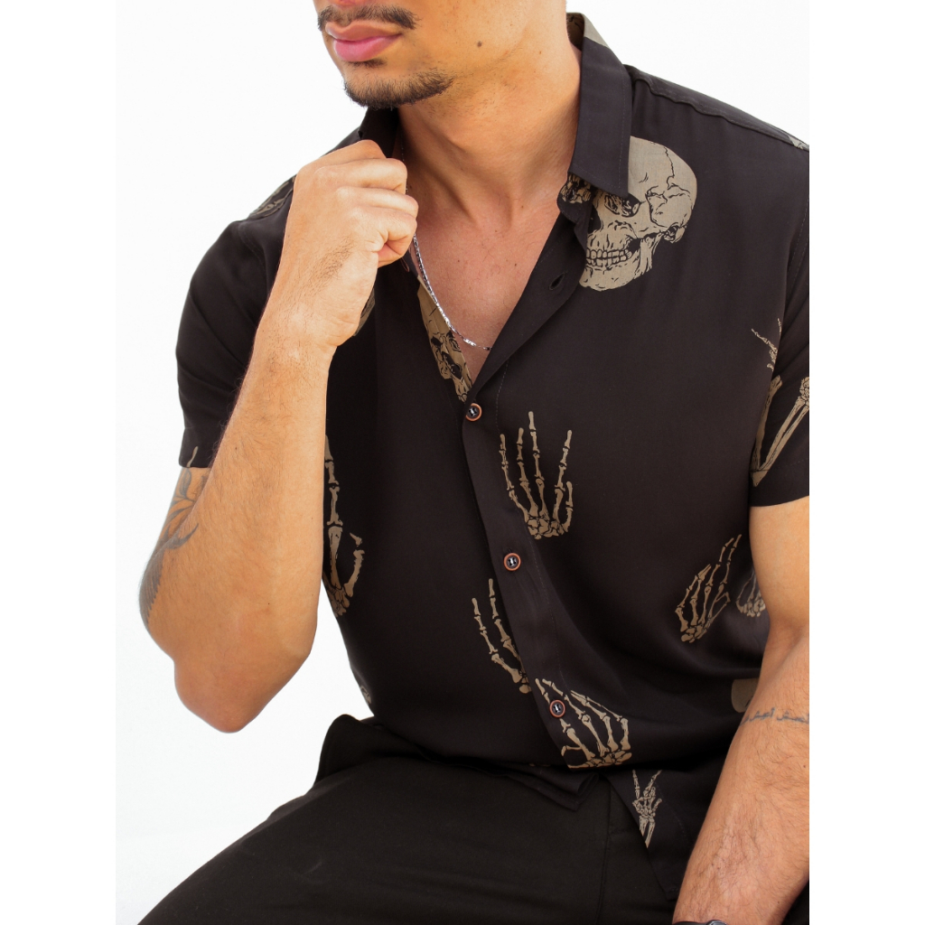 Camisa Social Masculina Slim Viscose Caveira Pronta Entrega