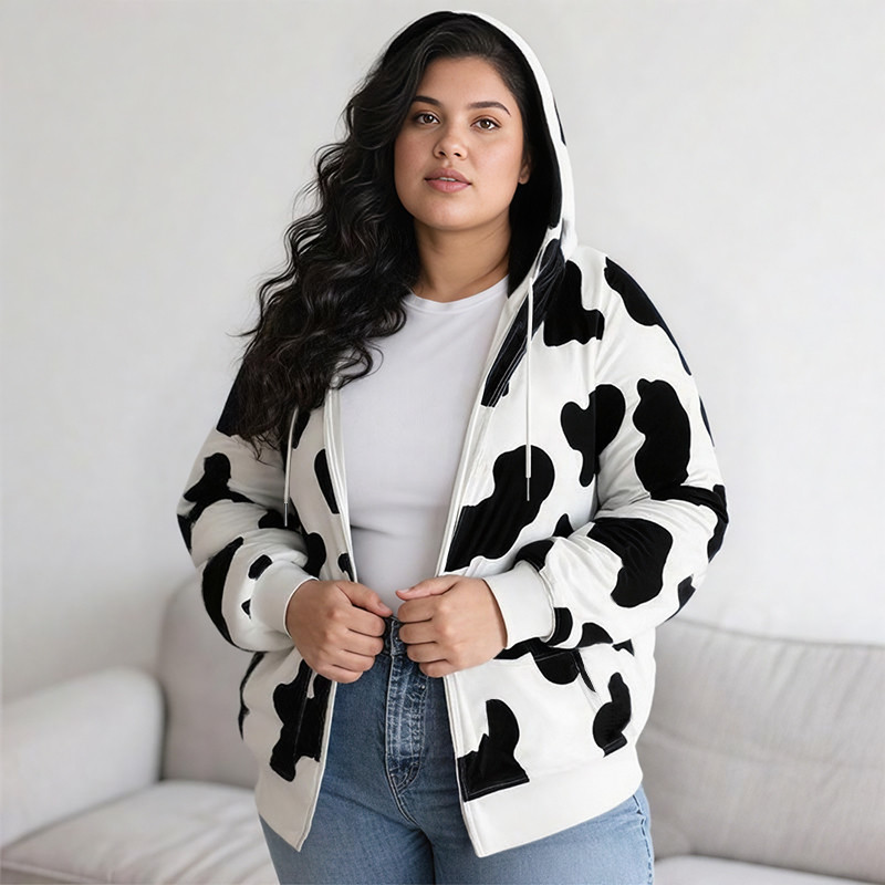 [Moletom Oversize] Mangas Compridas Tie Dye Cardigan Moletom Solto Fino Moda Plus Size Roupa Exterior de Inverno