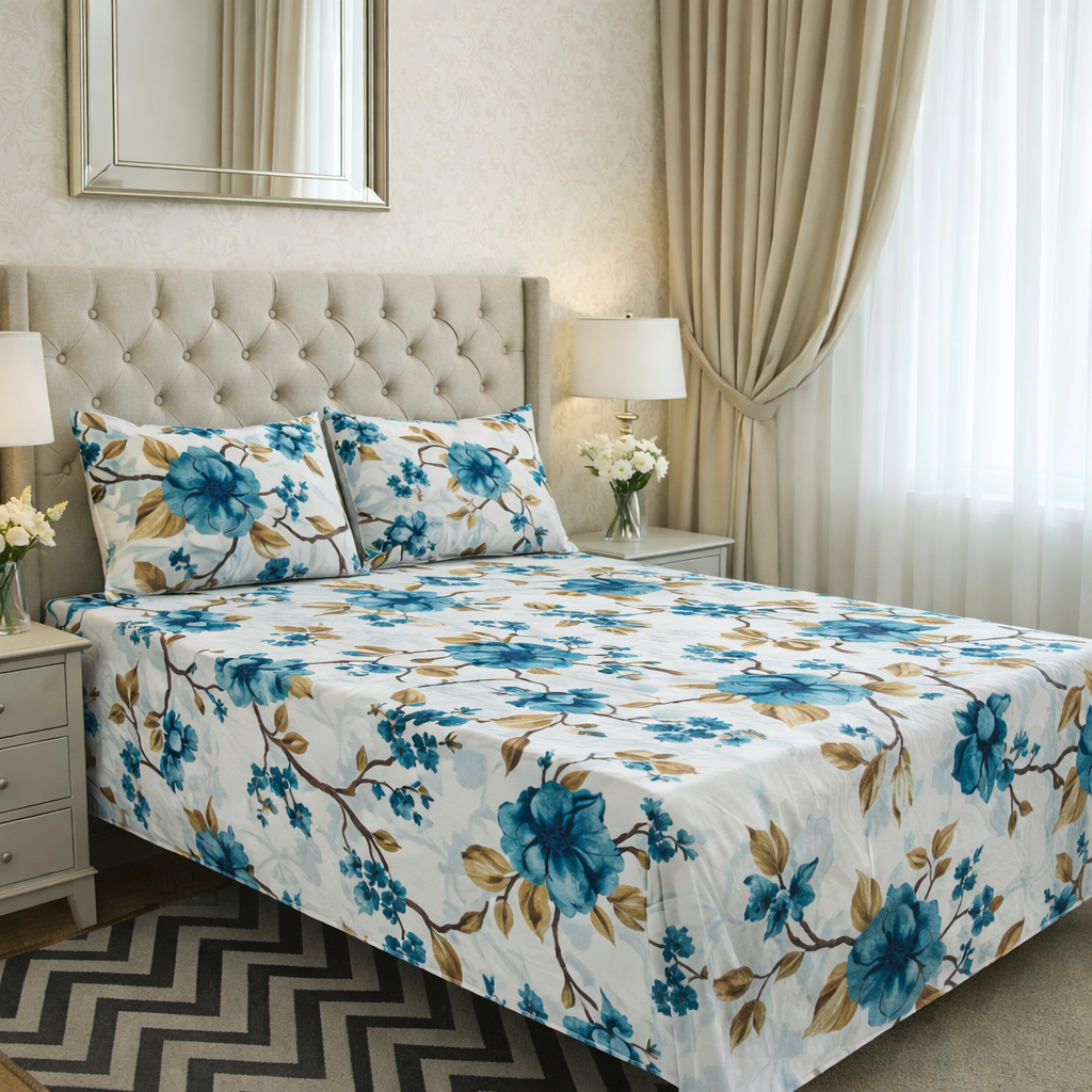 Capa Protetora Luva Casal King Estampada 3Pçs Hipercal C/Elástico 100% Algodão 400 Fios