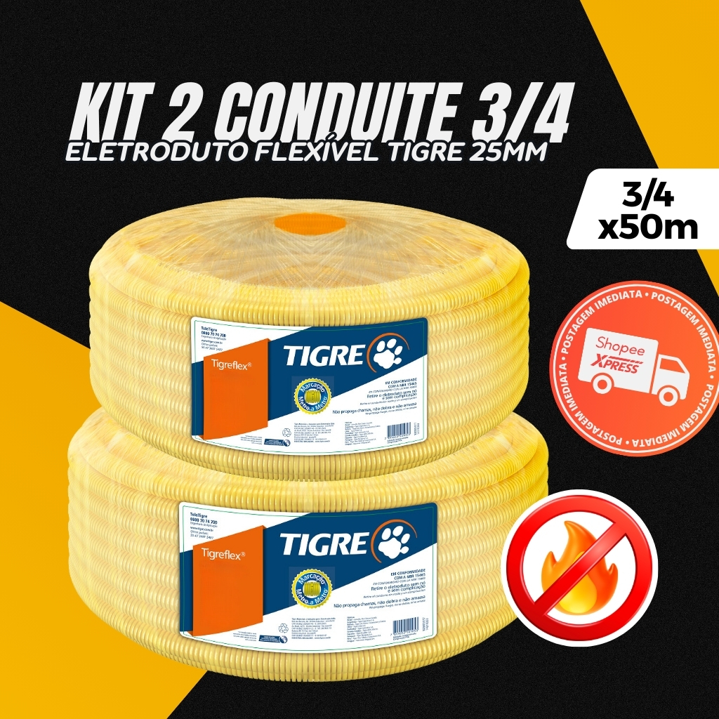 Conduite 3/4 X 50m Eletroduto Tigre Original Rolo Mangueira Corrugada