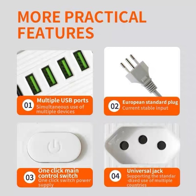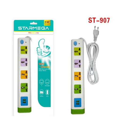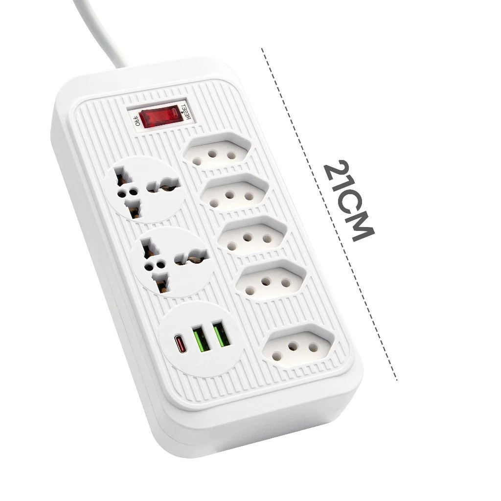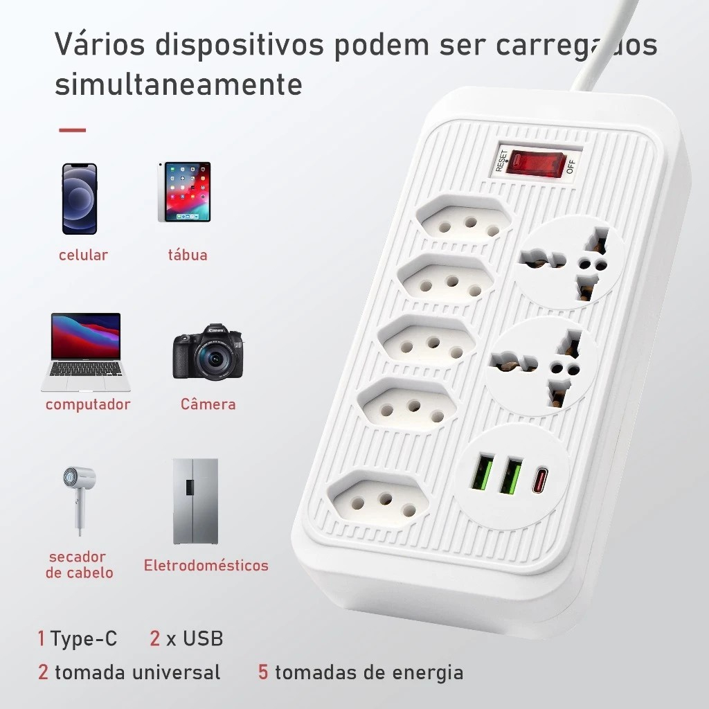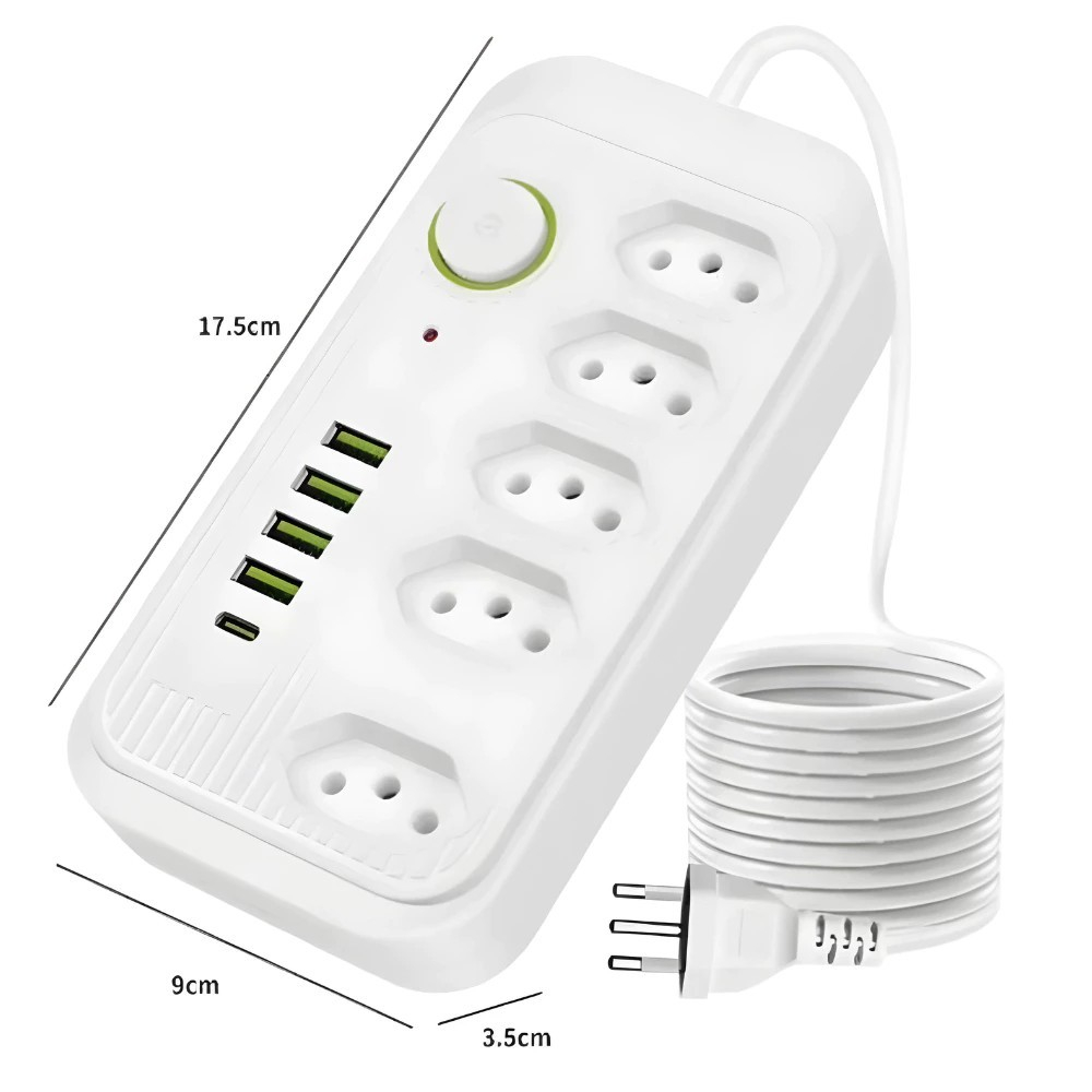 A Extensão Régua de 5 Tomadas 2 Tomadas Universal 2 Porta USB 1 Tipo-C 1,90m Bivolt - A631