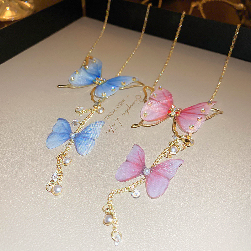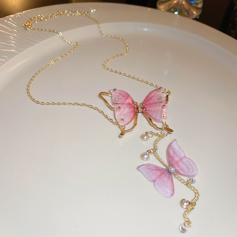 (Novo)Colar De Pérola De Diamante Tule Borboleta Tassel Super Fada Alta Qualidade Cadeia De Clavícula Moda Mori