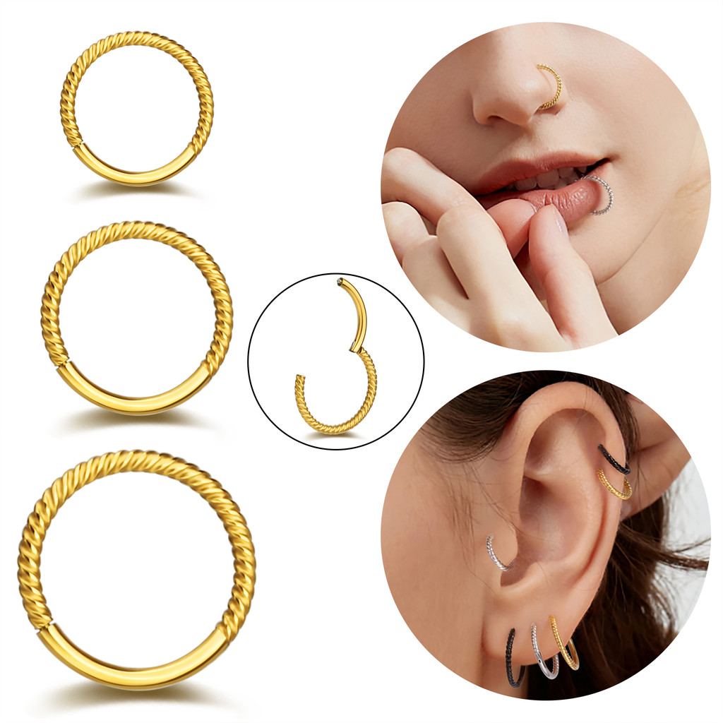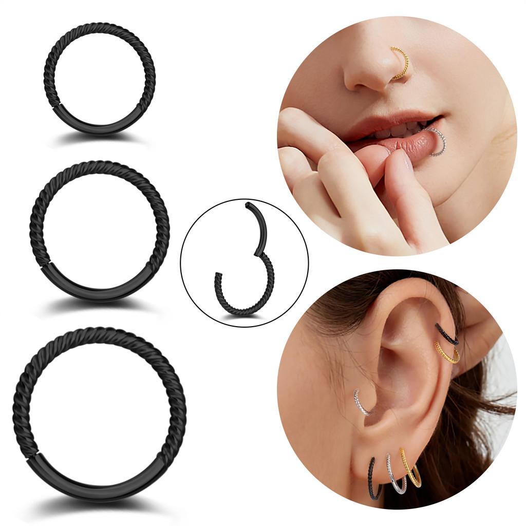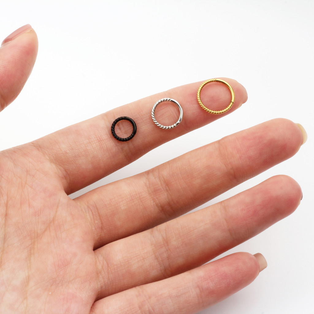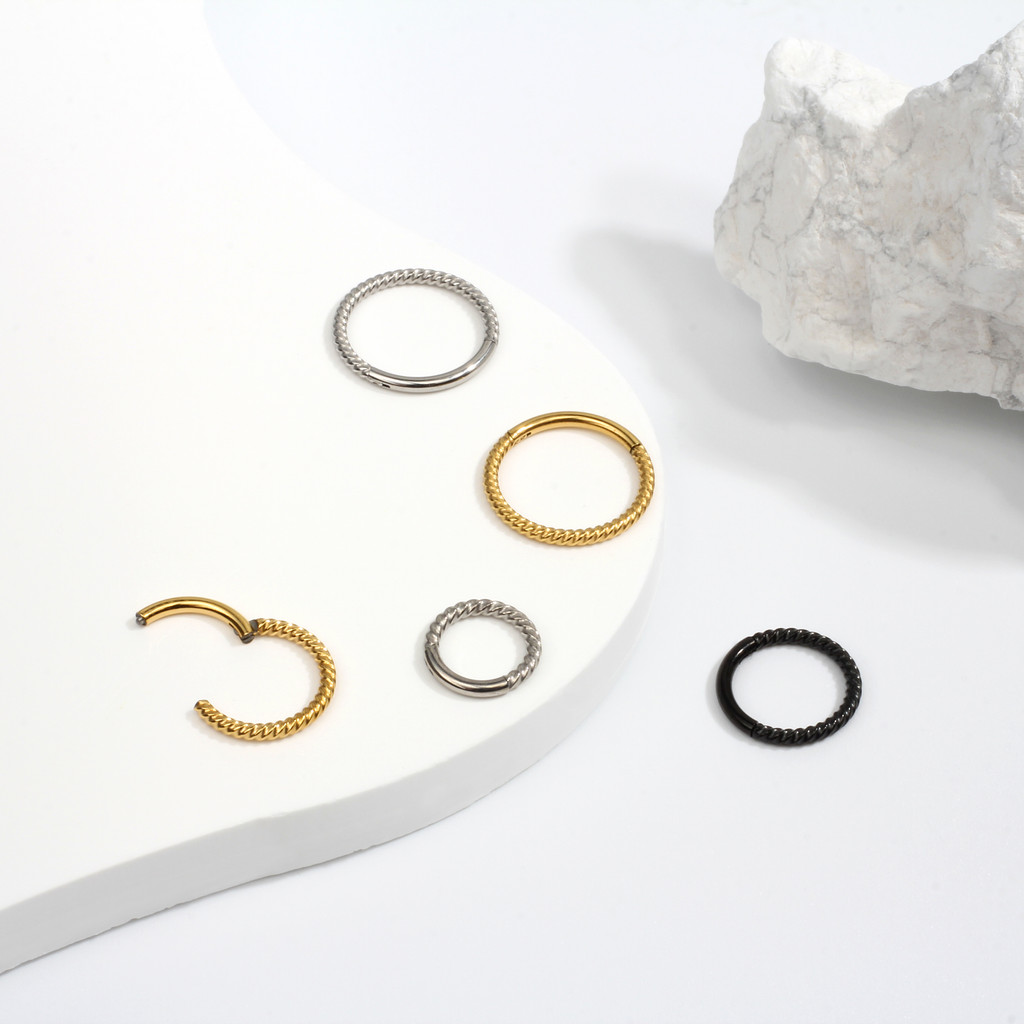 Piercing Argola Aço Cirúrgico PVD Segmento Articulado Detalhe Torcido / Septril, Rook, Conch, Nariz