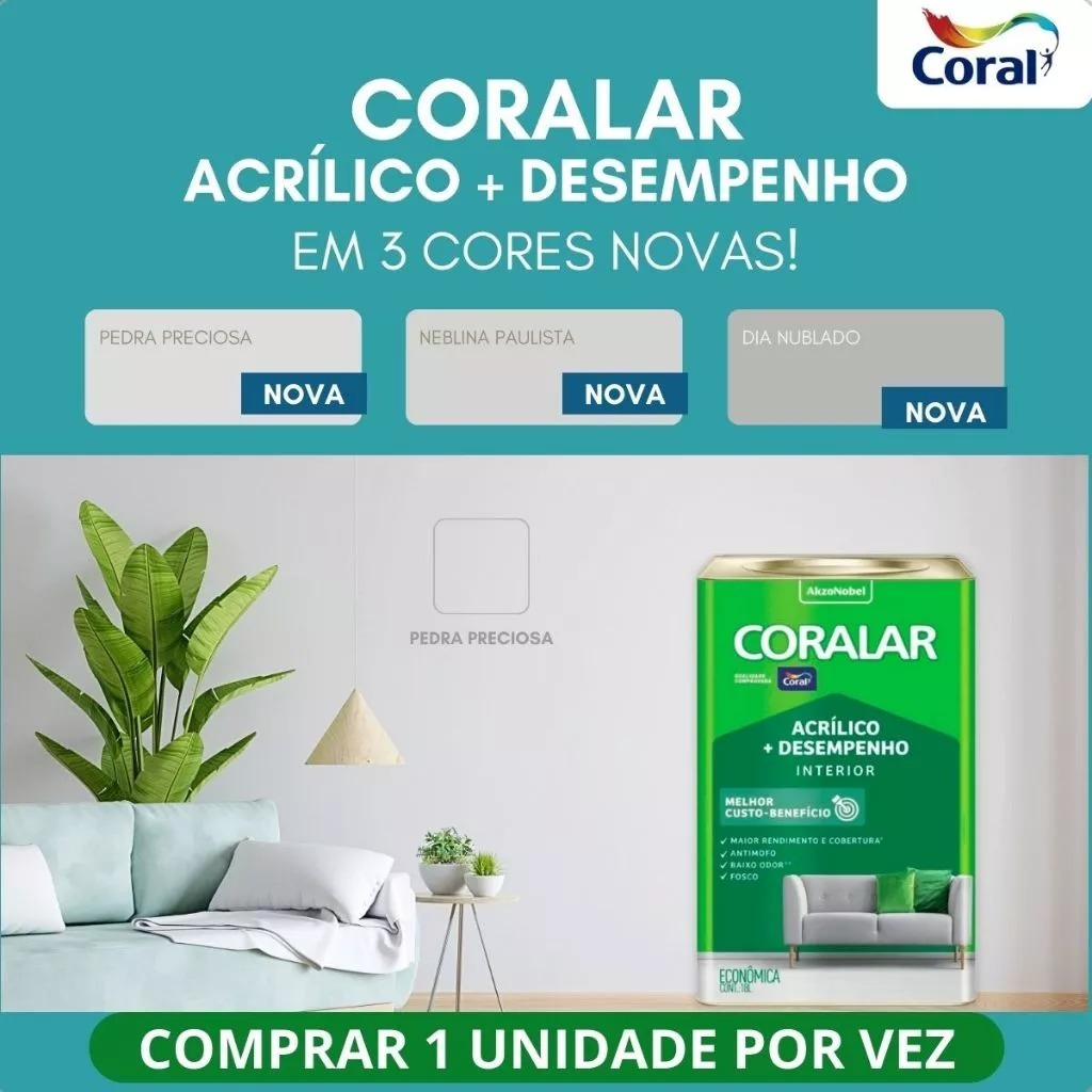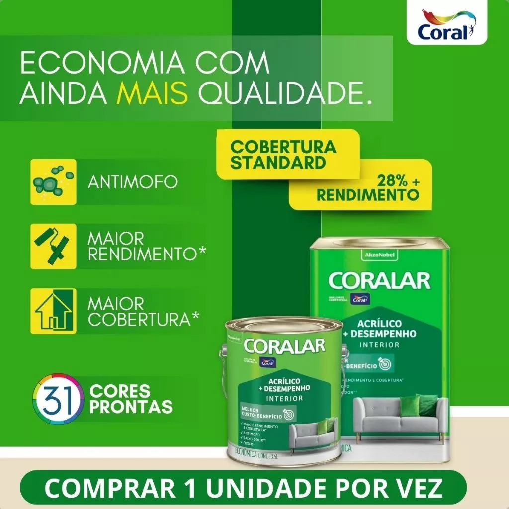Tinta Econômica Fosca Coralar Paredes Coral 18 L itros Anti Mofo Acrílica Interno Interior Cores