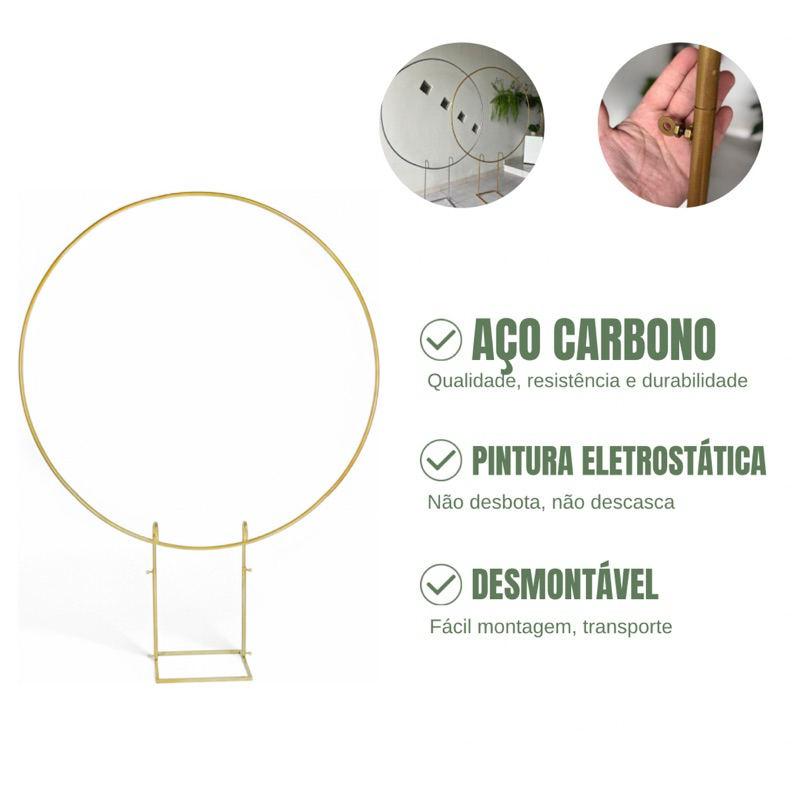 Estrutura Arco Redondo 1,50m Desmontável Ferro Reforçado Regulável para Festas e Decoração Bexigas