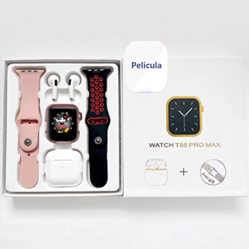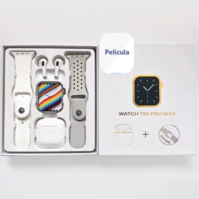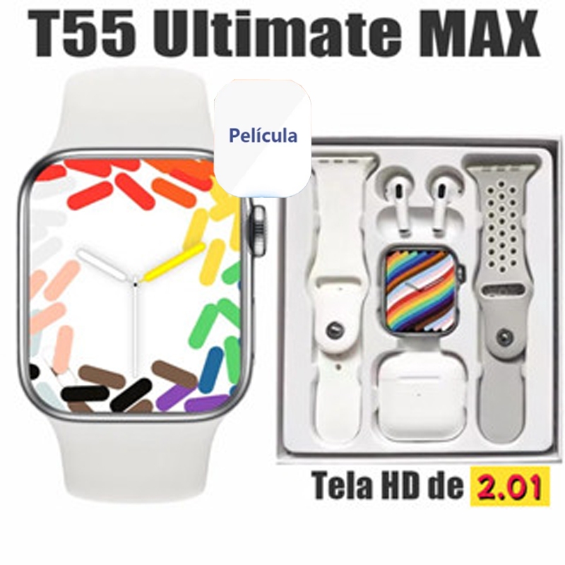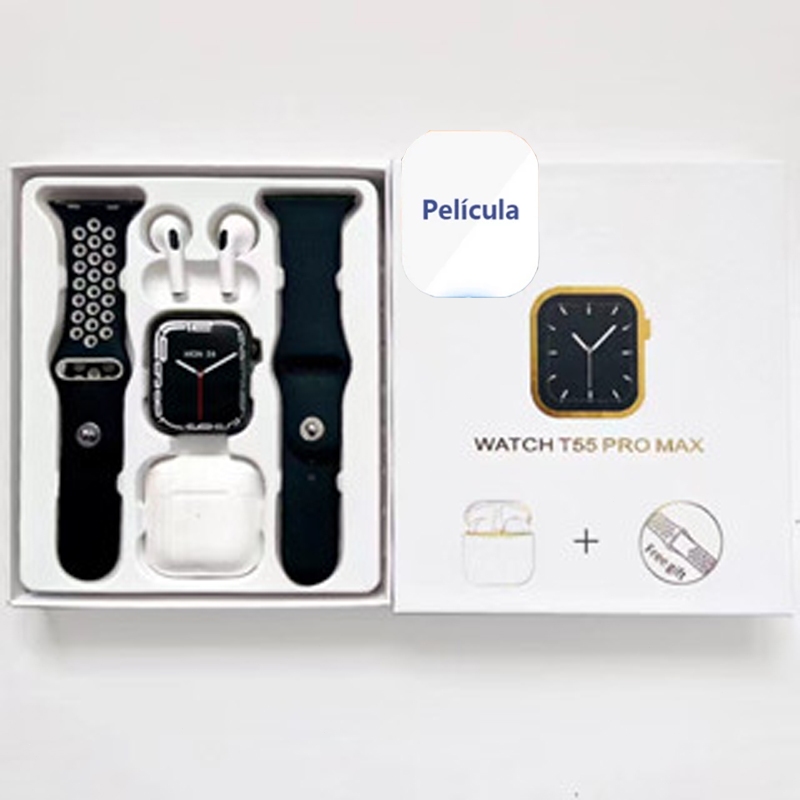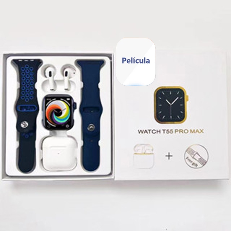 (i12 Fone) T55 Pro Max Smart Watch Com 4 Earbuds Set Hot-sale 2 Alças Bluetooth Chamada De Papel De Parede Personalizado