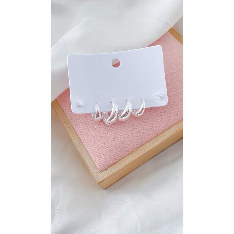 Trio de Brincos Argolinhas + Ponto de Luz banhado a prata 925