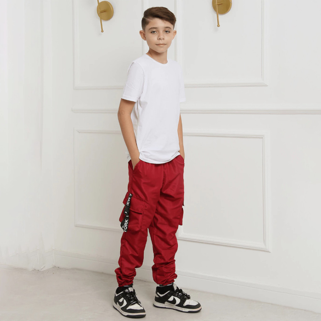 Calça Jogger Cargo Infantil Menino Preta Verde Vermelha Bege Tamanho 10 12 14 Anos Blogueiro Street