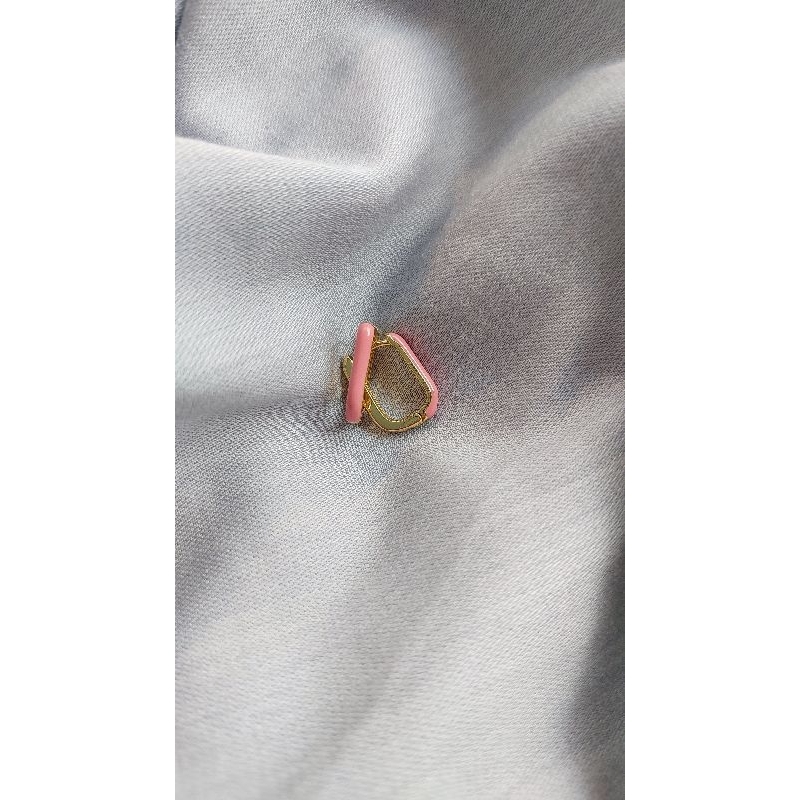 Brinco argola dourada esmaltada rosa candy