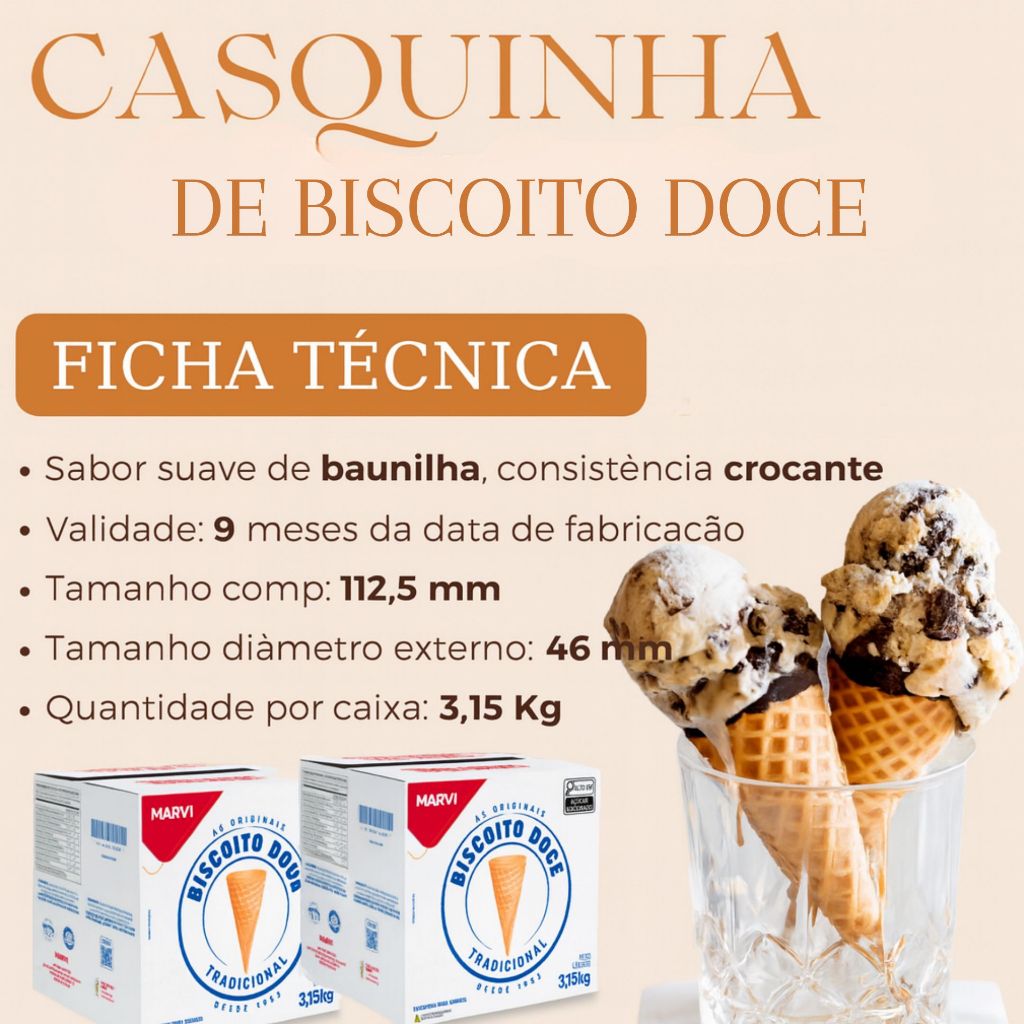 Casquinha Biscoito Doce MARVI Extra Crocante Utilizado Pelo Mc Donaldes - 300 UNIDADES