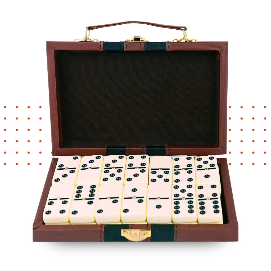 Domino De Osso Profissional - Pedras Grandes-C/Maleta - 10Mm - C/28 Peças - NL