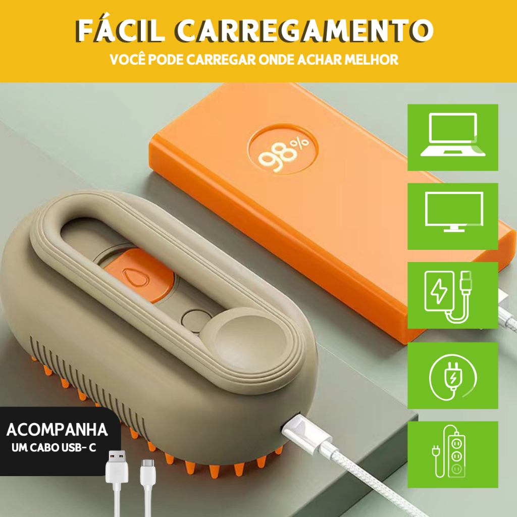 Escova A Vapor Para Pets Elétrica 3 em 1 Escova, Limpa e Acaricia - Nosso Lar