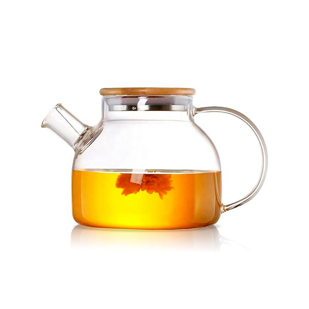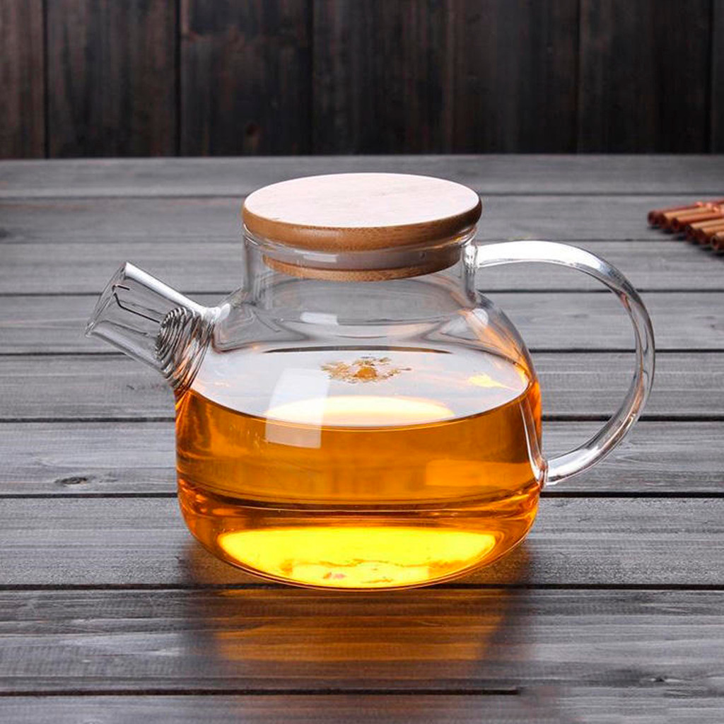 Chaleira Bule de Vidro para Chá 1L Tampa Hermética Bambu com Bico Coador
