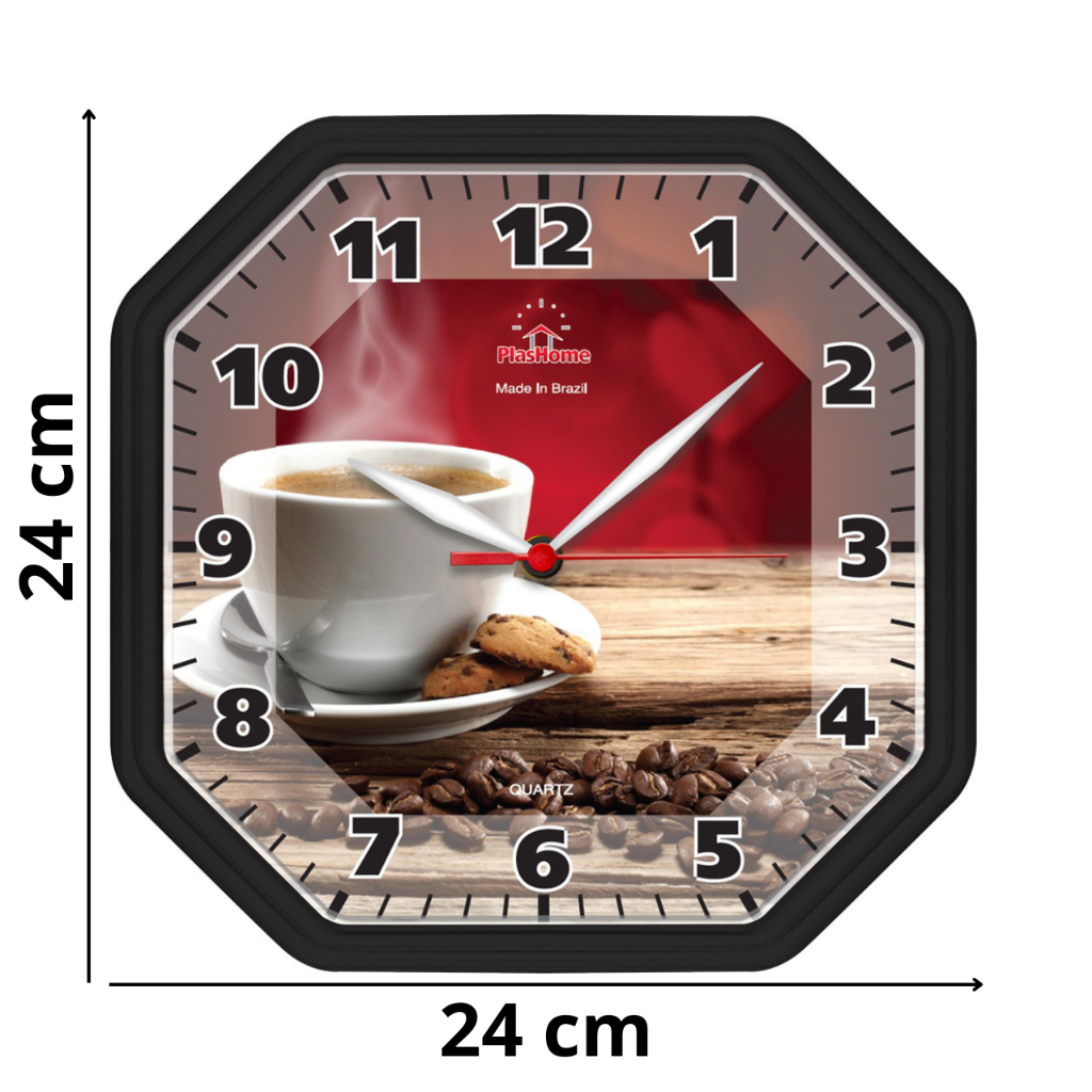 Relógio de Parede Plashome Gama Preto Café Decoração Sala Cozinha Escritório Oitavado