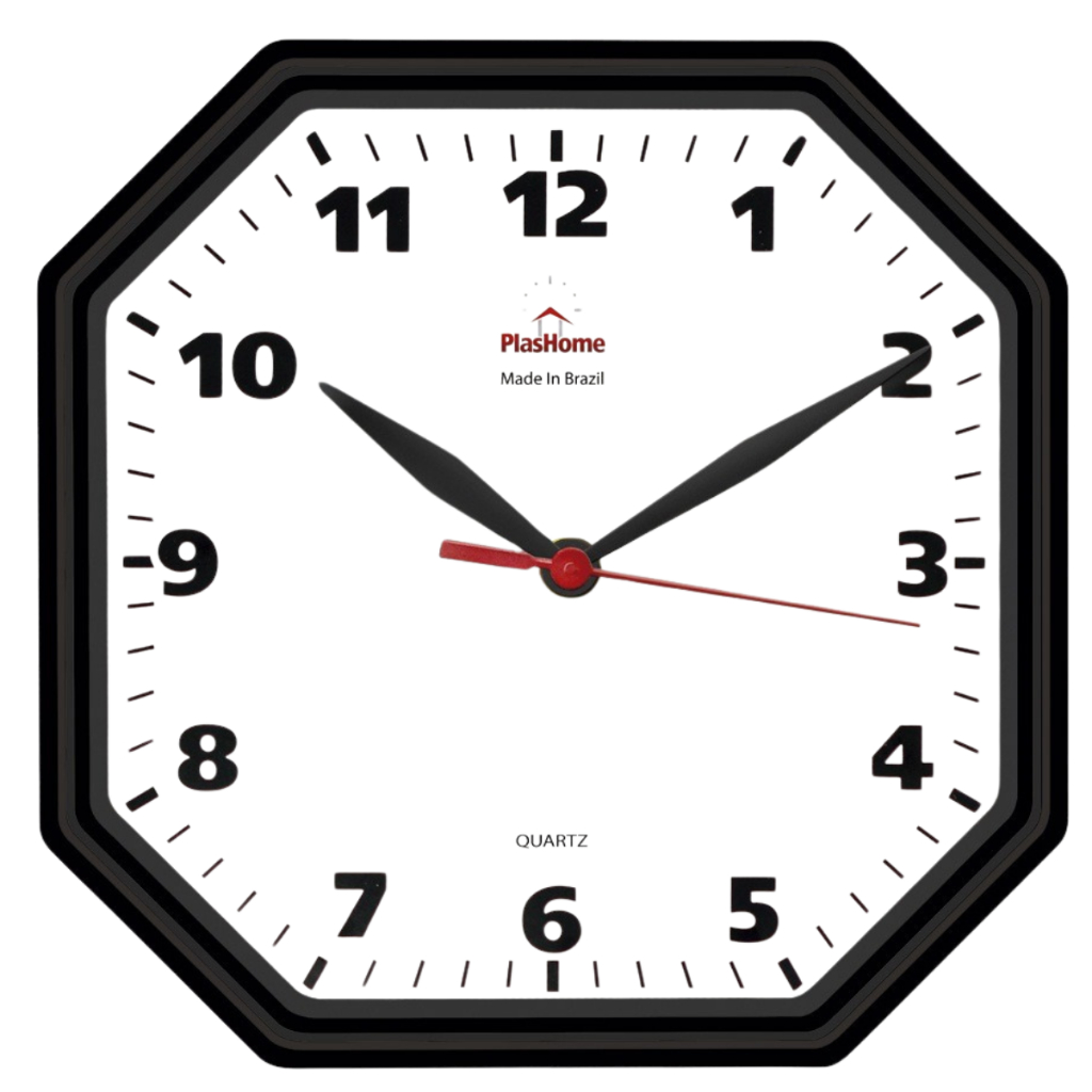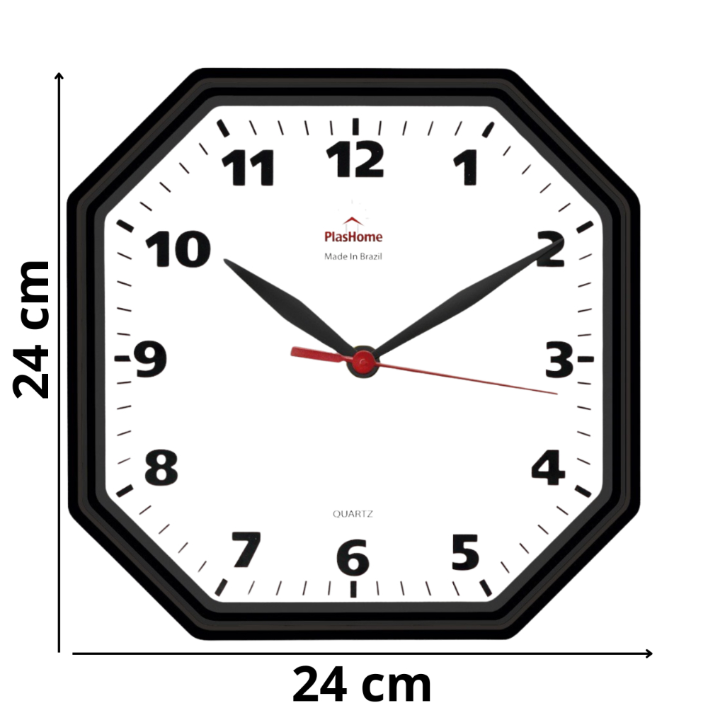Relógio de Parede Gama Preto Clássico Oitavado Plashome Cozinha Sala Escritório