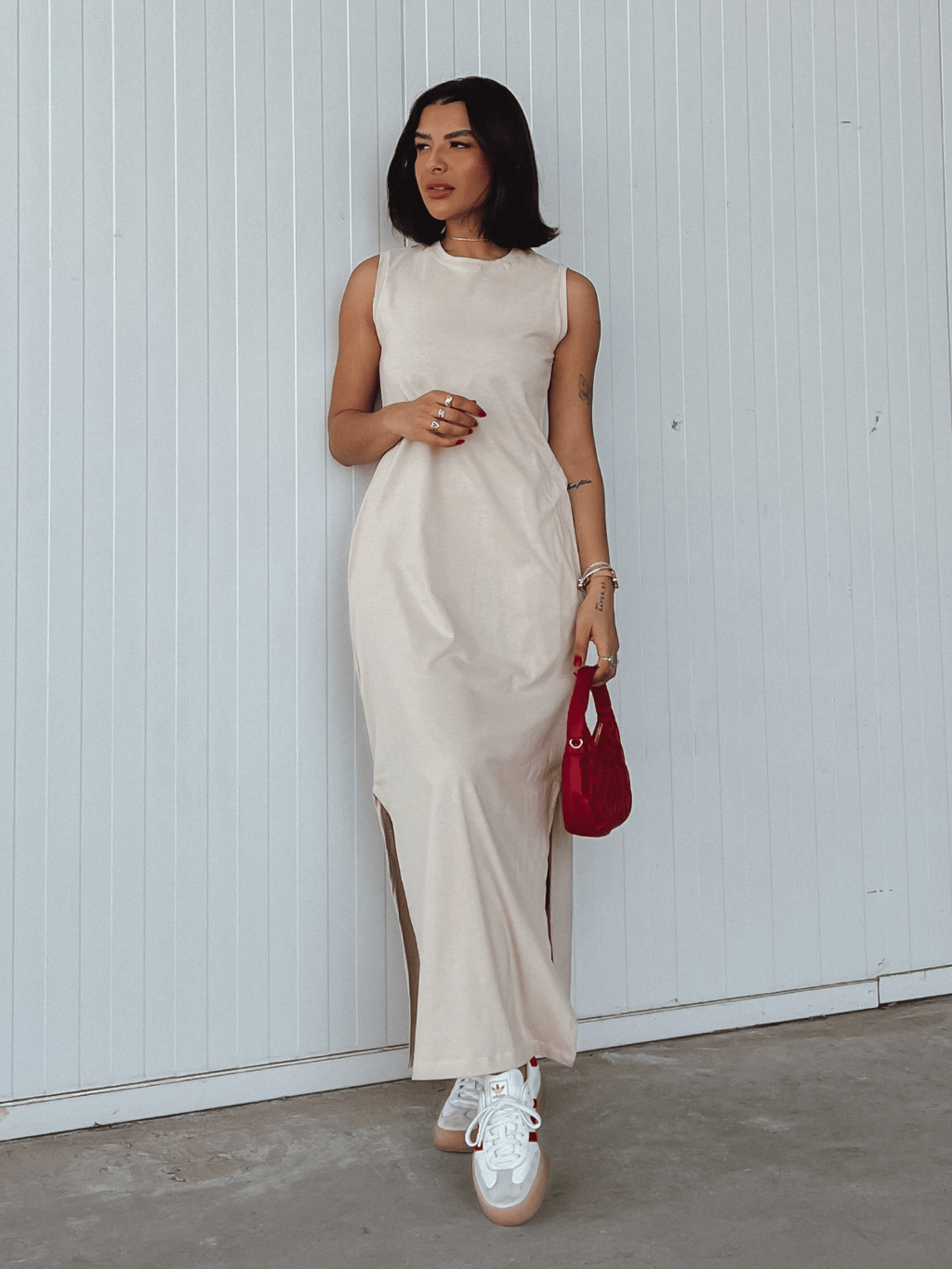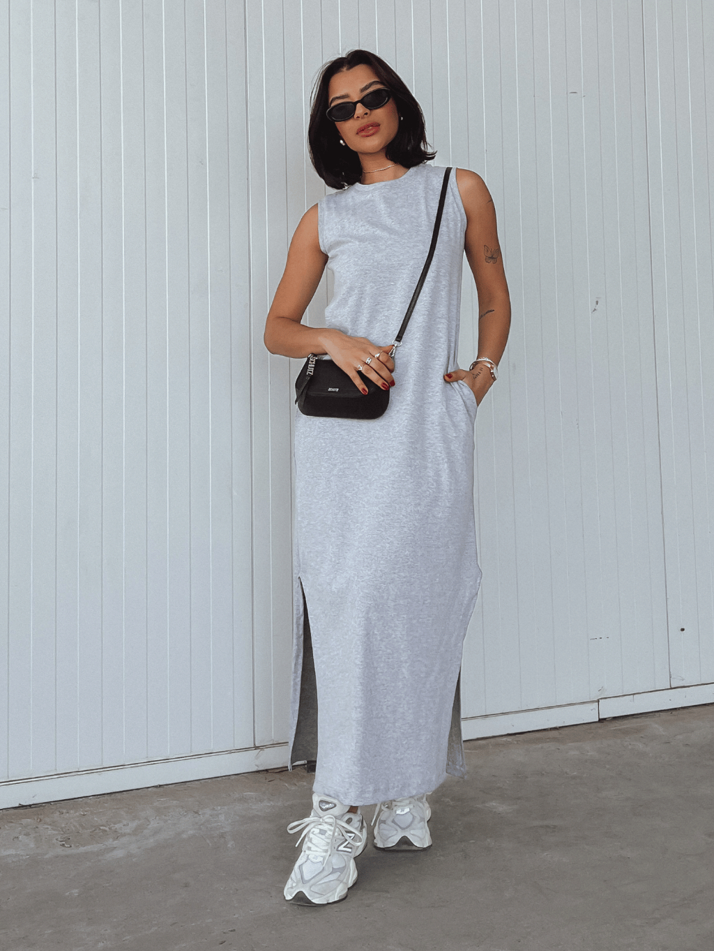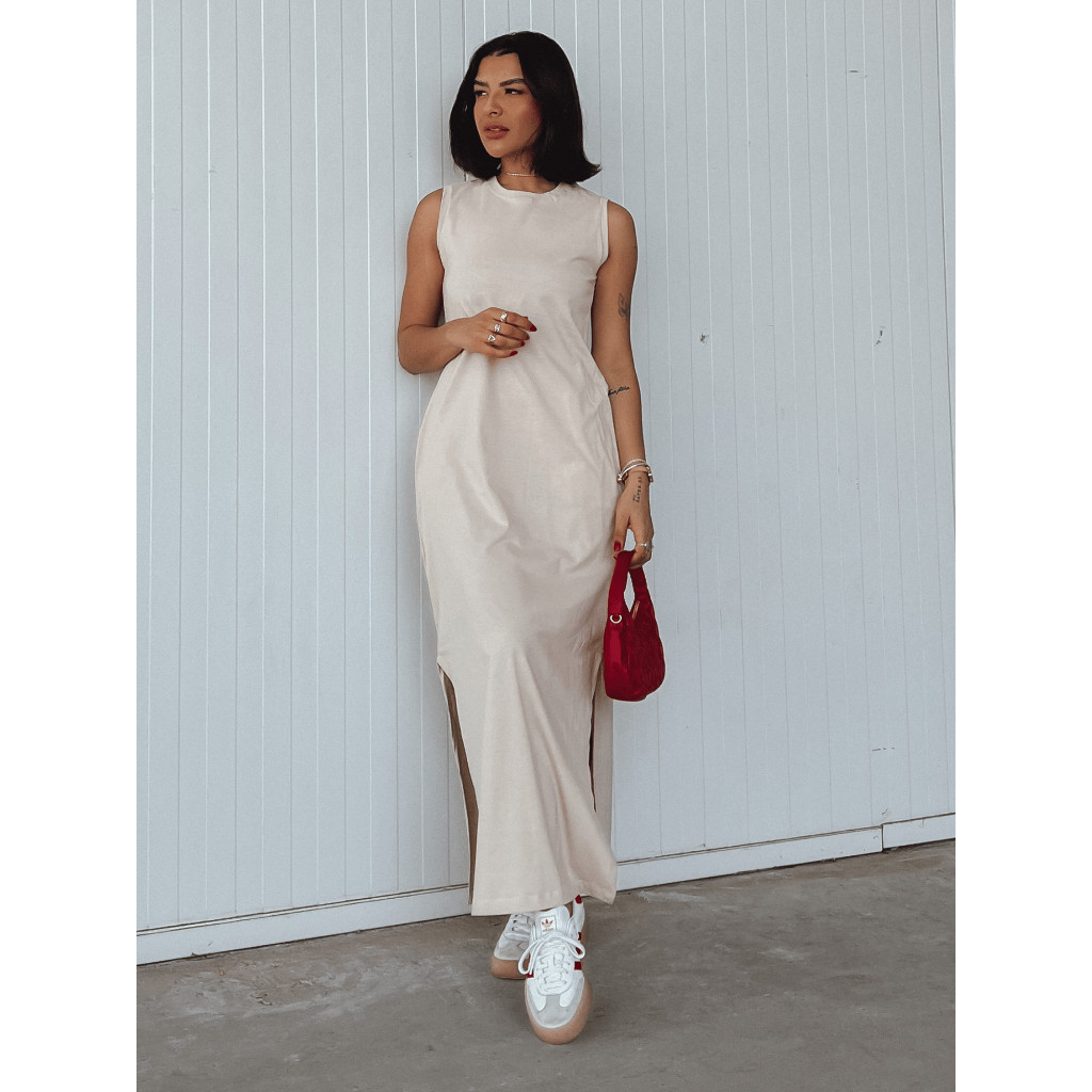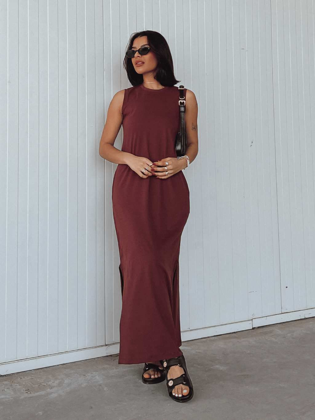 Vestido Cavado Liso Longo Com Bolso 100% Algodão