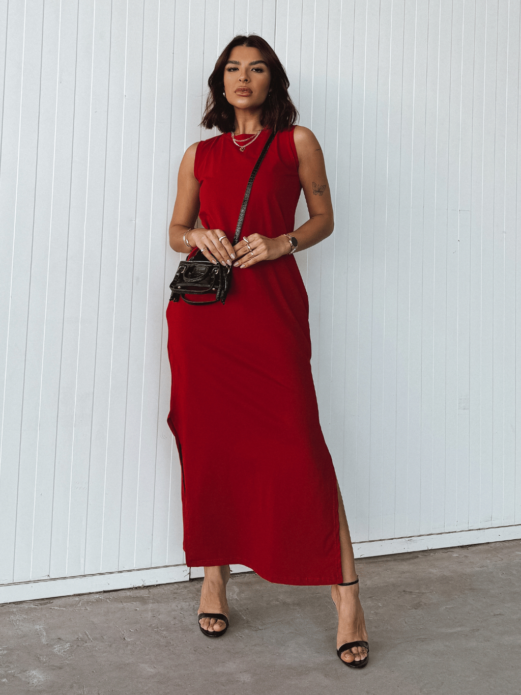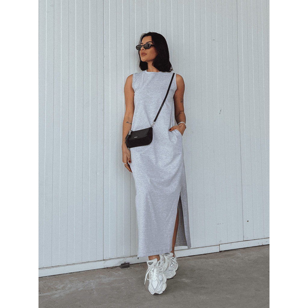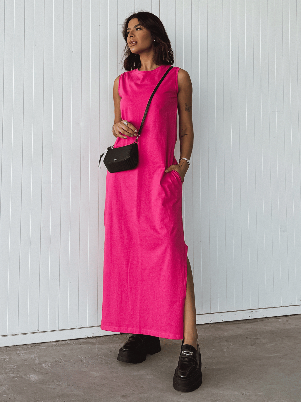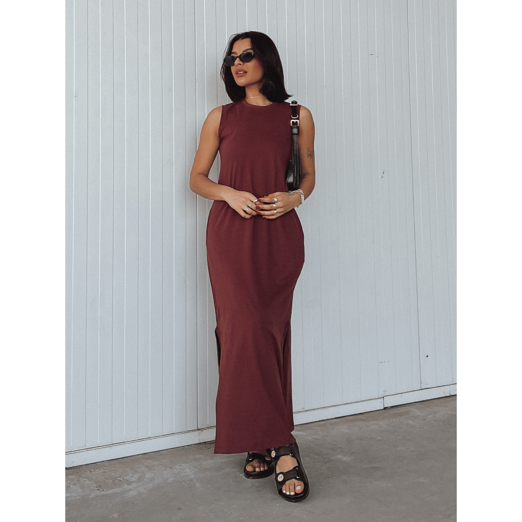 Vestido Cavado Liso Longo Com Bolso 100% Algodão