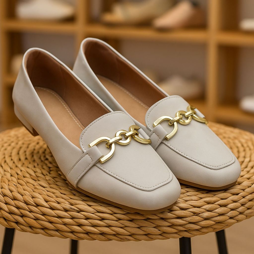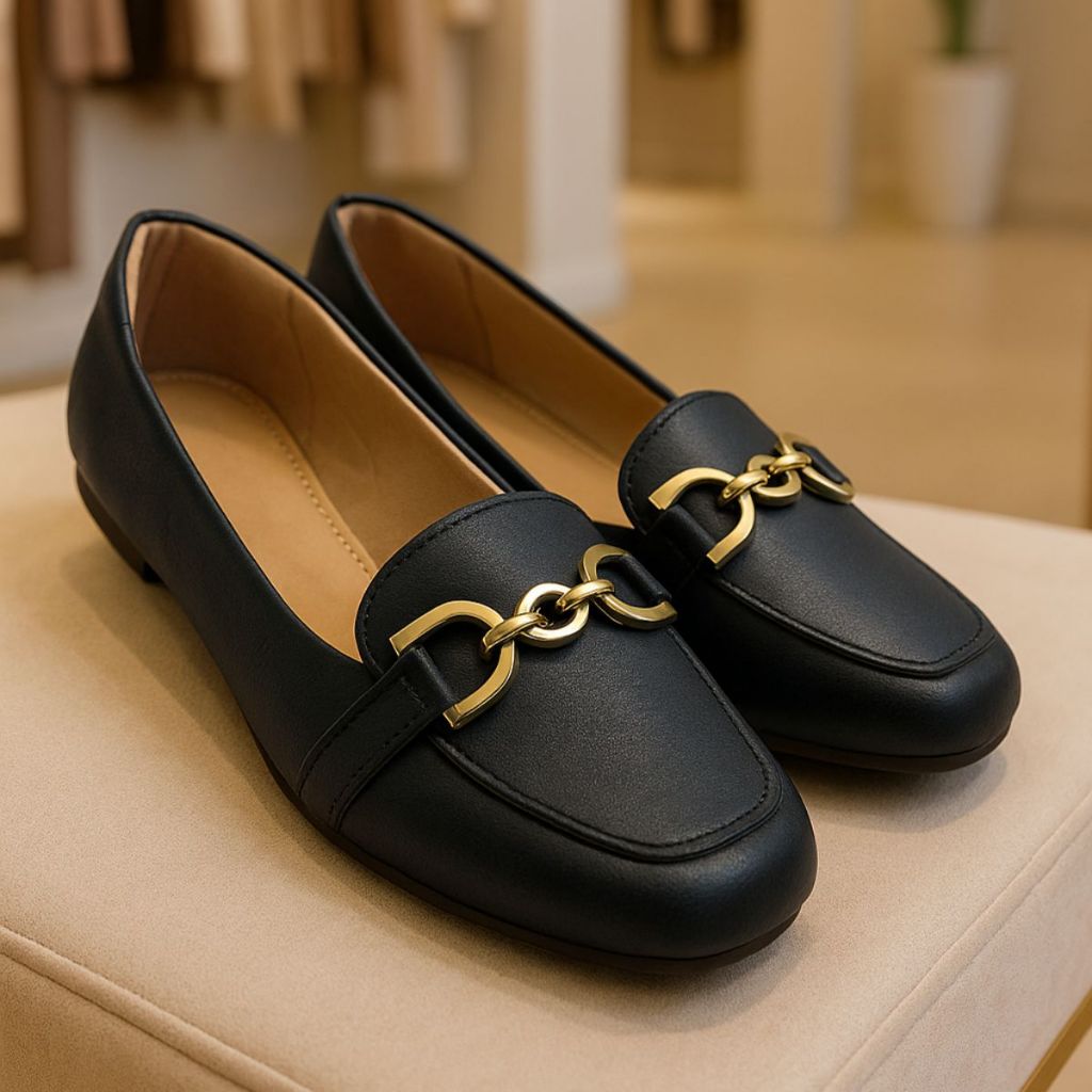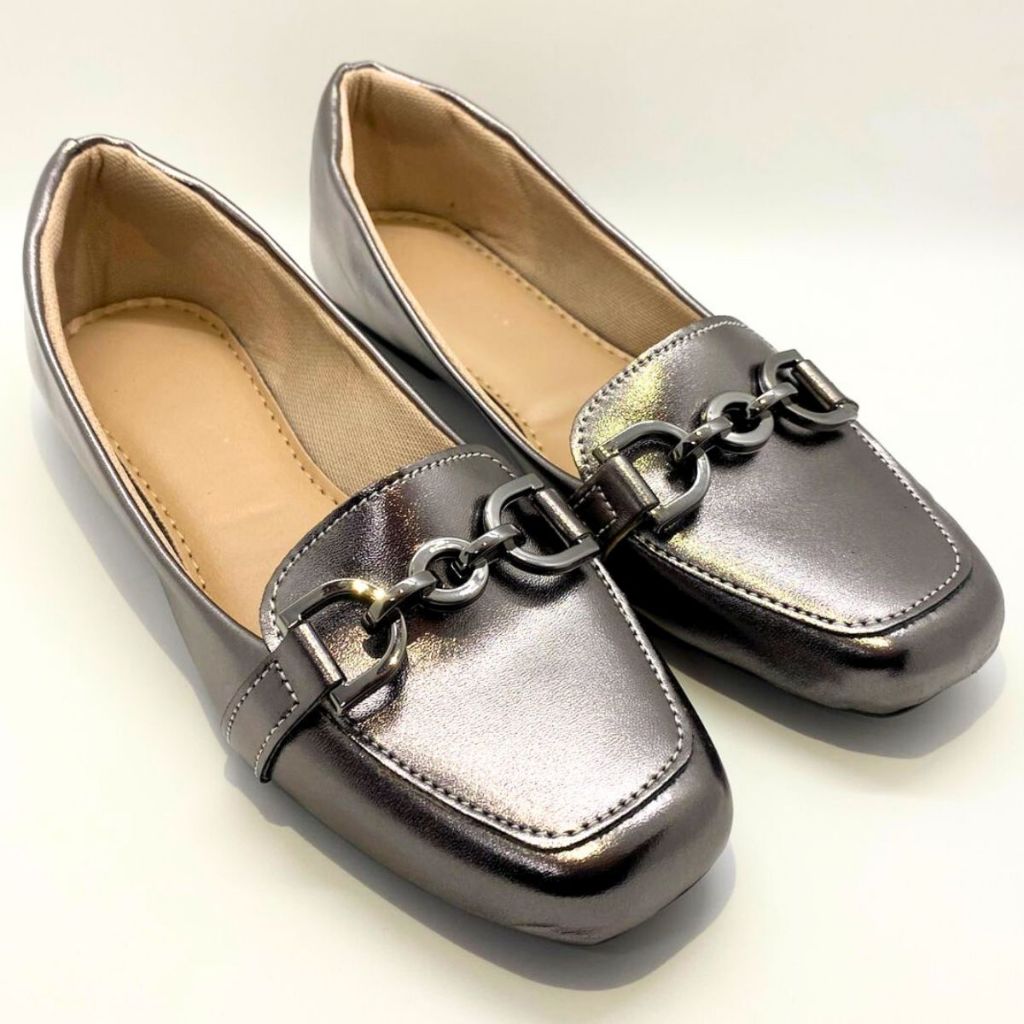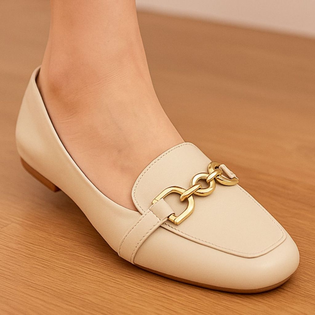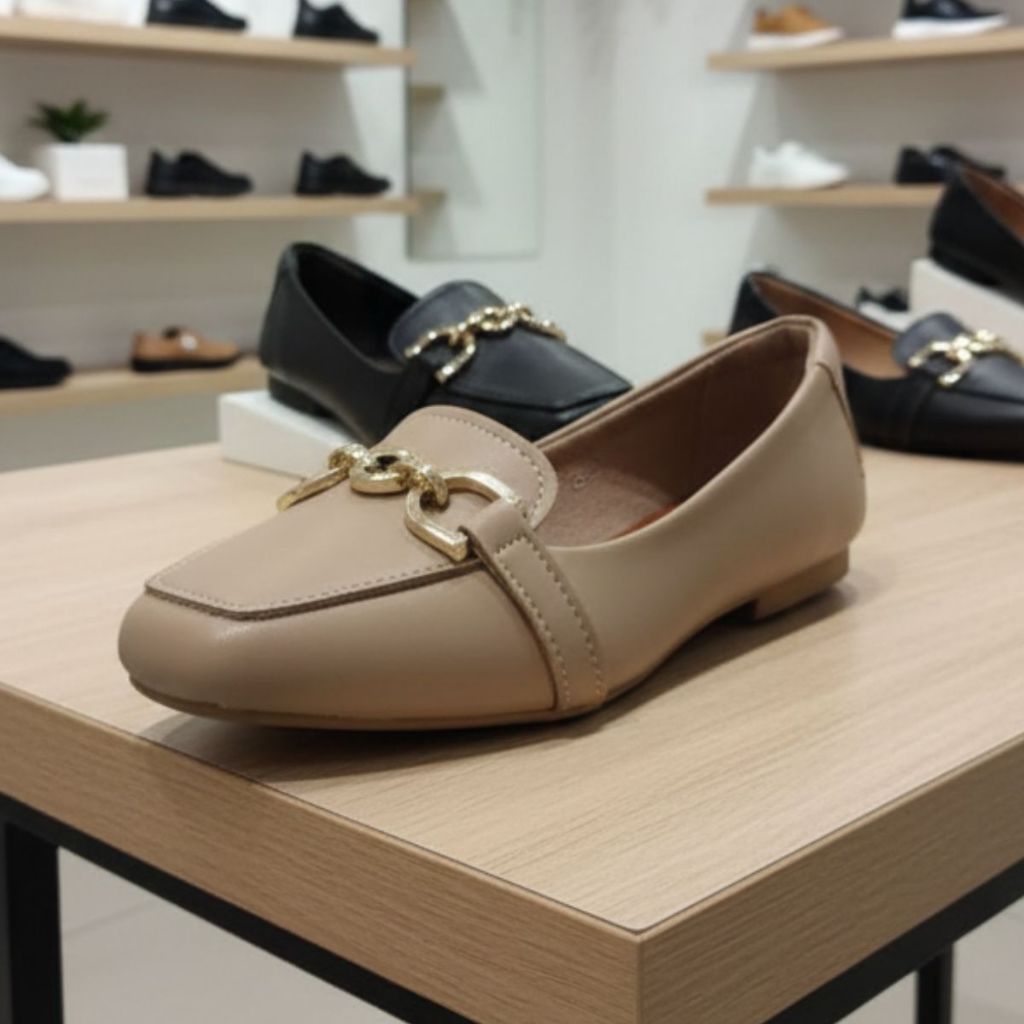 Sapatilha Mocassim Bico Quadrado Feminina Confortável Casual Enfeite Elegante