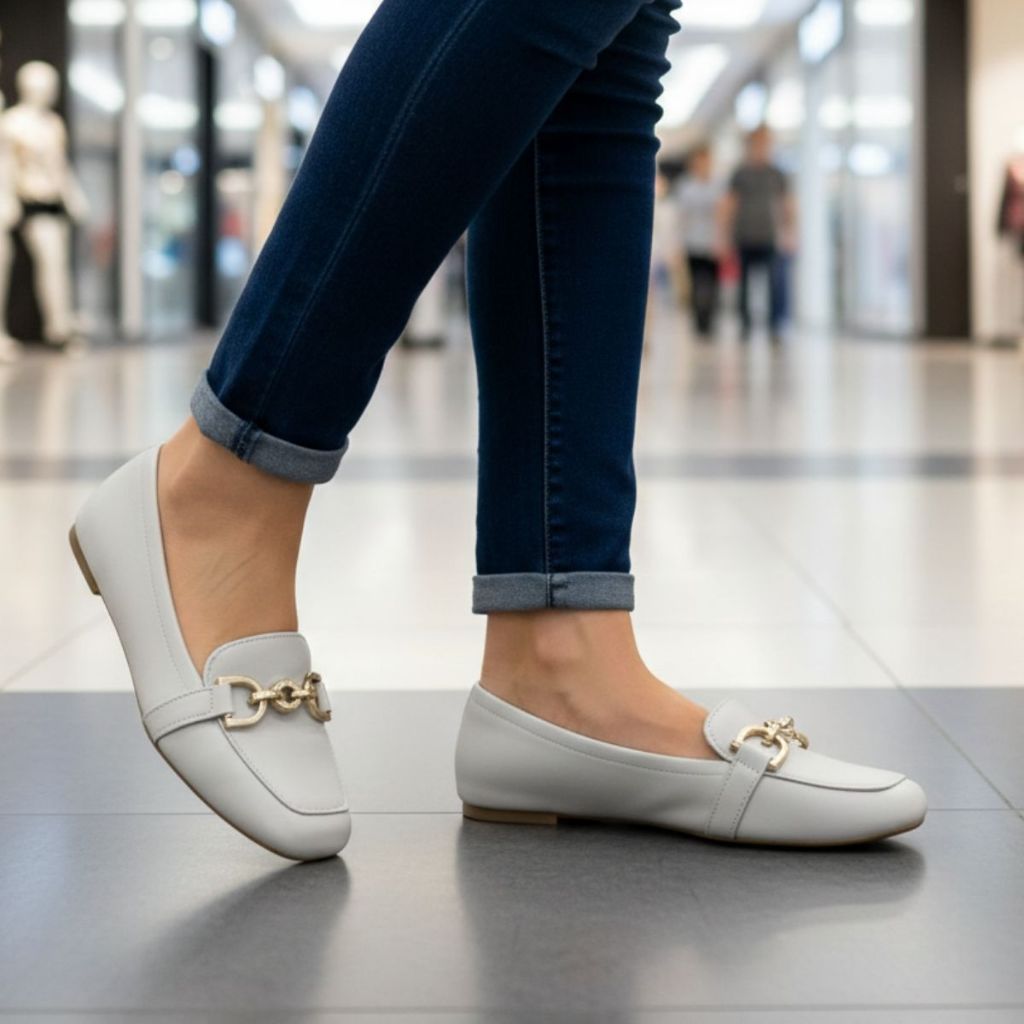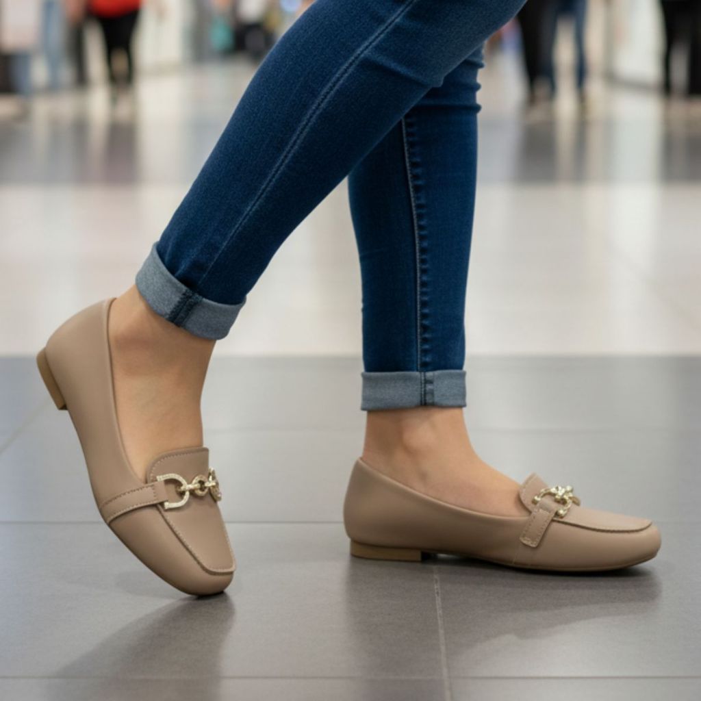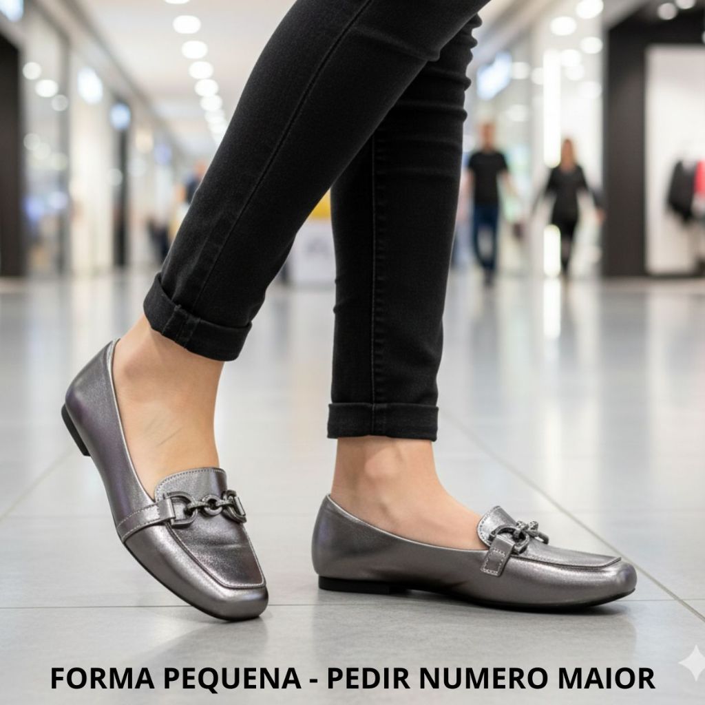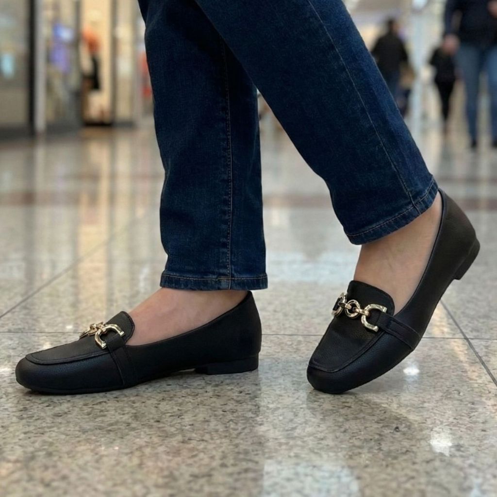 Sapatilha Mocassim Feminina Casual Confortável Enfeite Metalizado Elegante