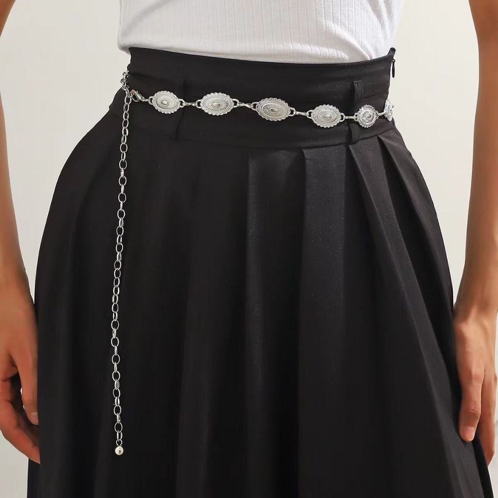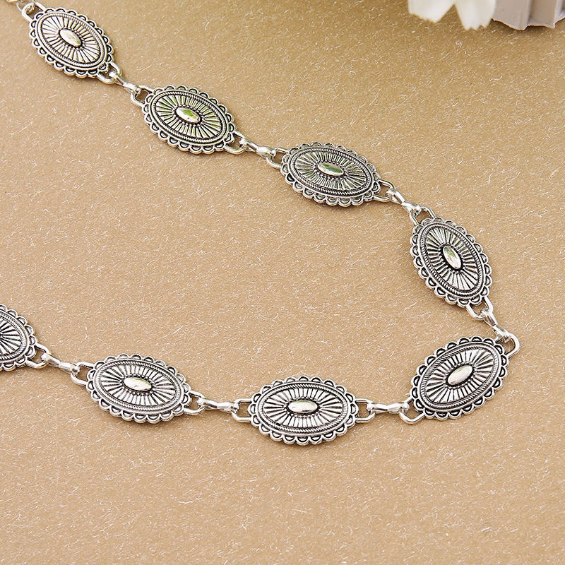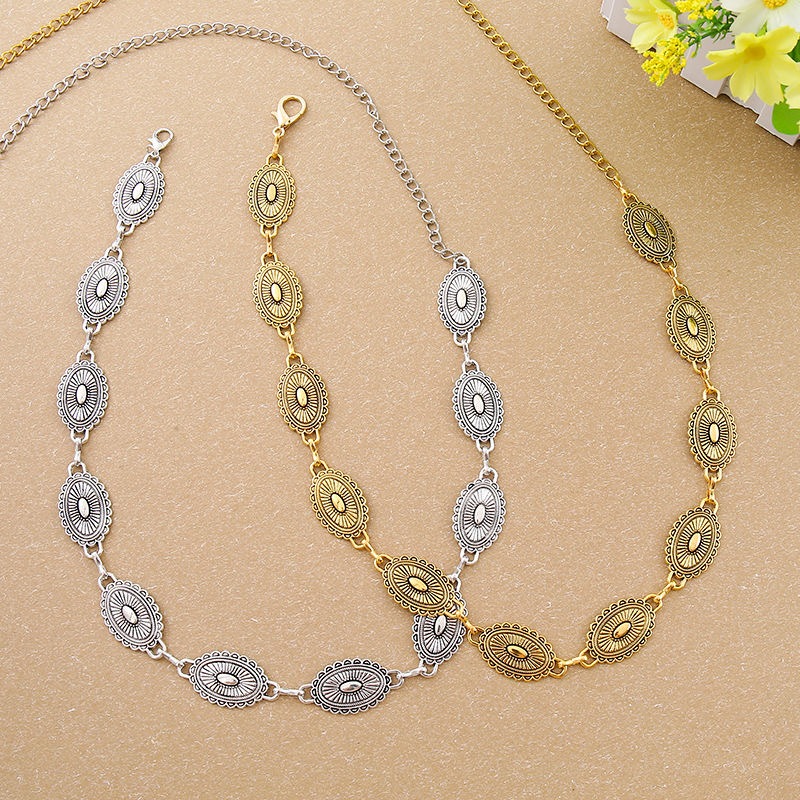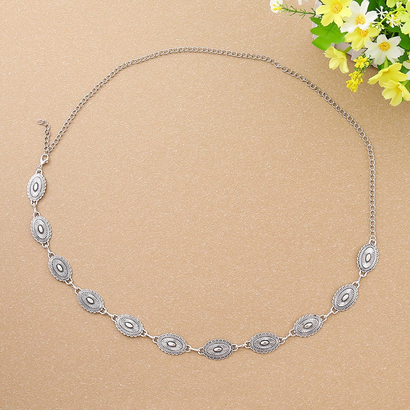 Cinto feminino retro prata estilo nacional esculpida decoração de flores cintura corrente carnaval
